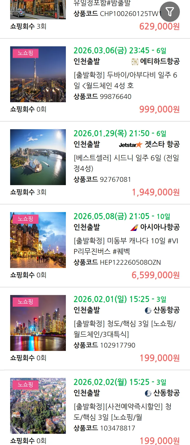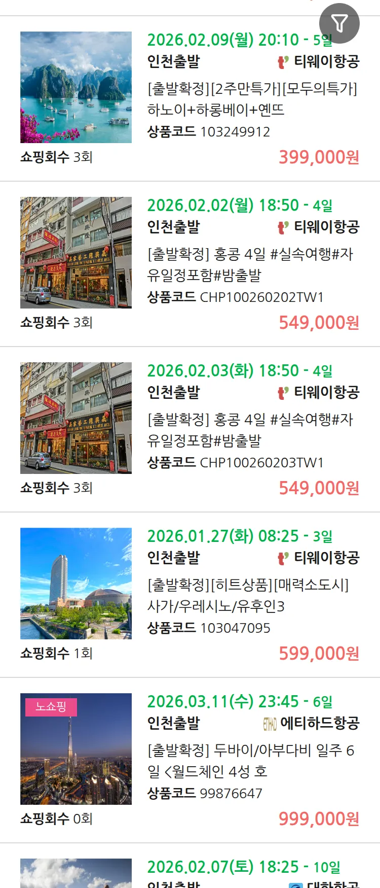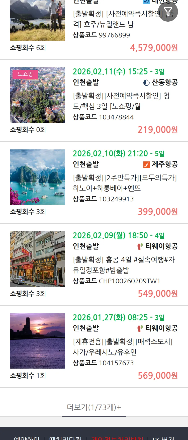 (1월 10일(토)) 땡처리 99.9% 확정 패키지