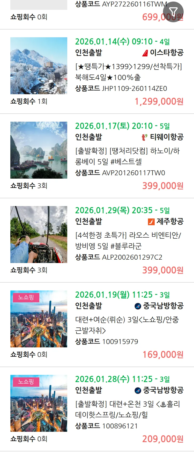 (1월 10일(토)) 땡처리 연휴 패키지 패키지