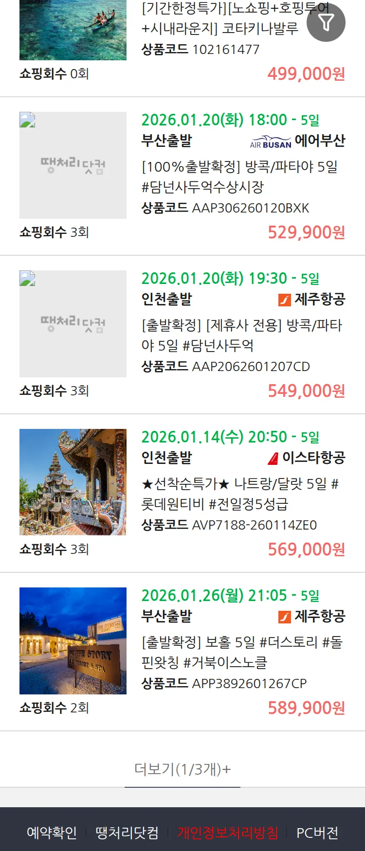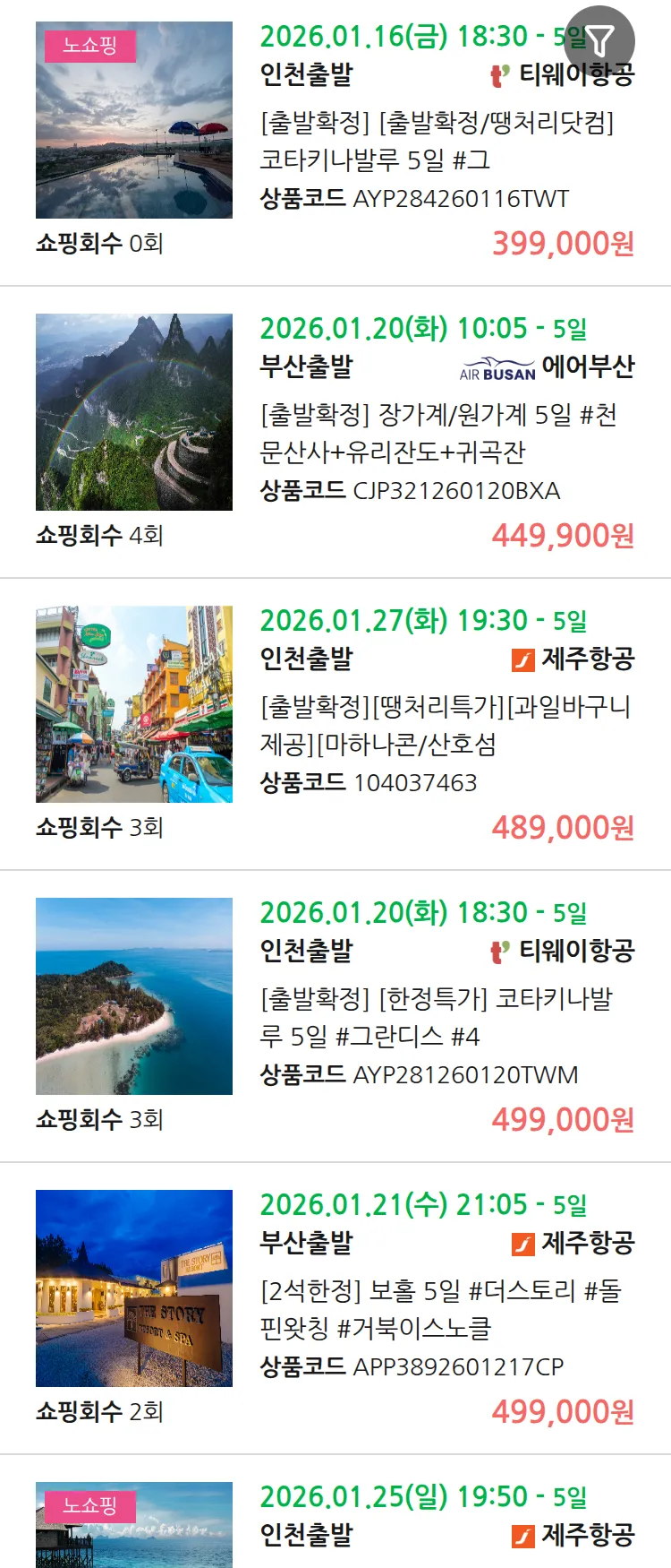 (1월 10일(토)) 땡처리 99.9% 확정 패키지