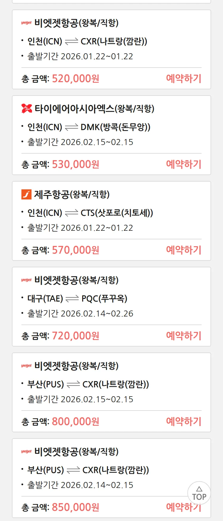 (1월 10일(토)) 땡처리 99.9% 확정 패키지