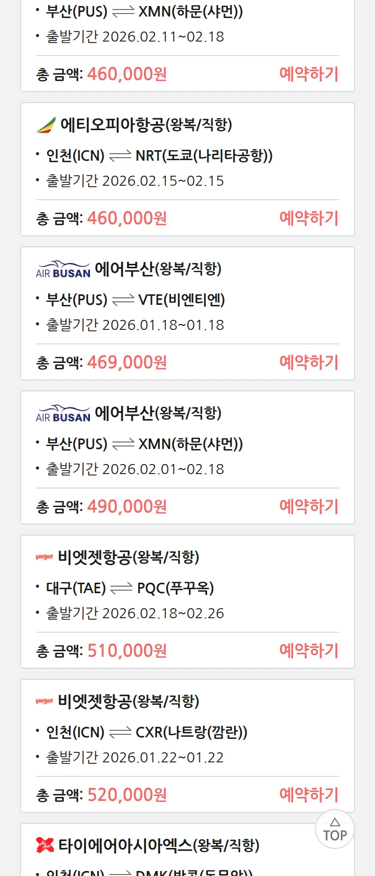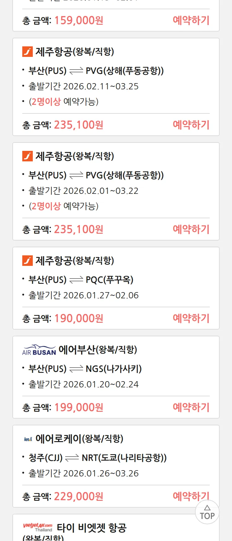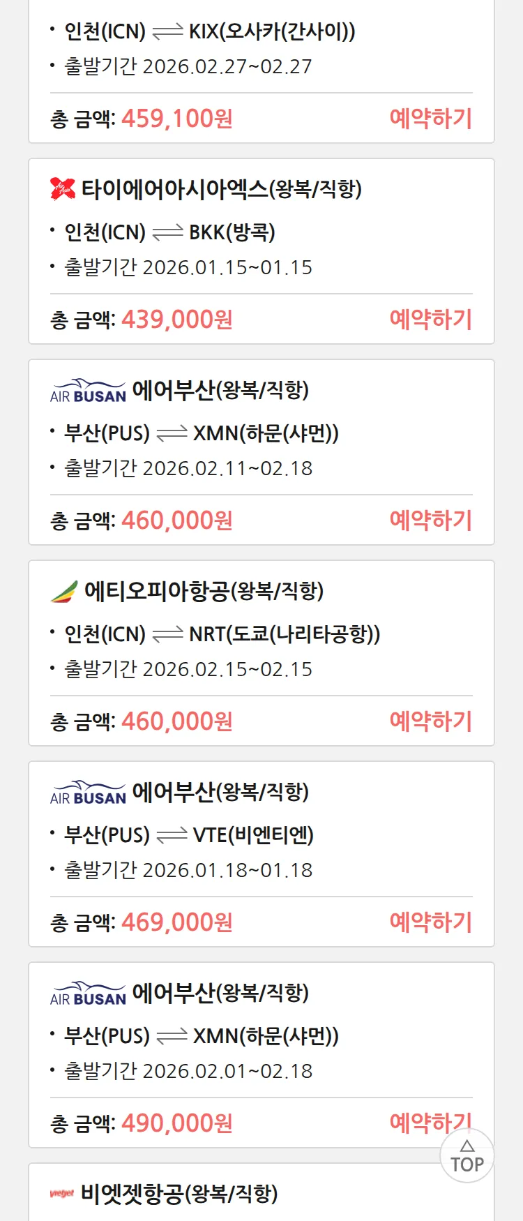 (1월 10일(토)) 땡처리 특가 항공권