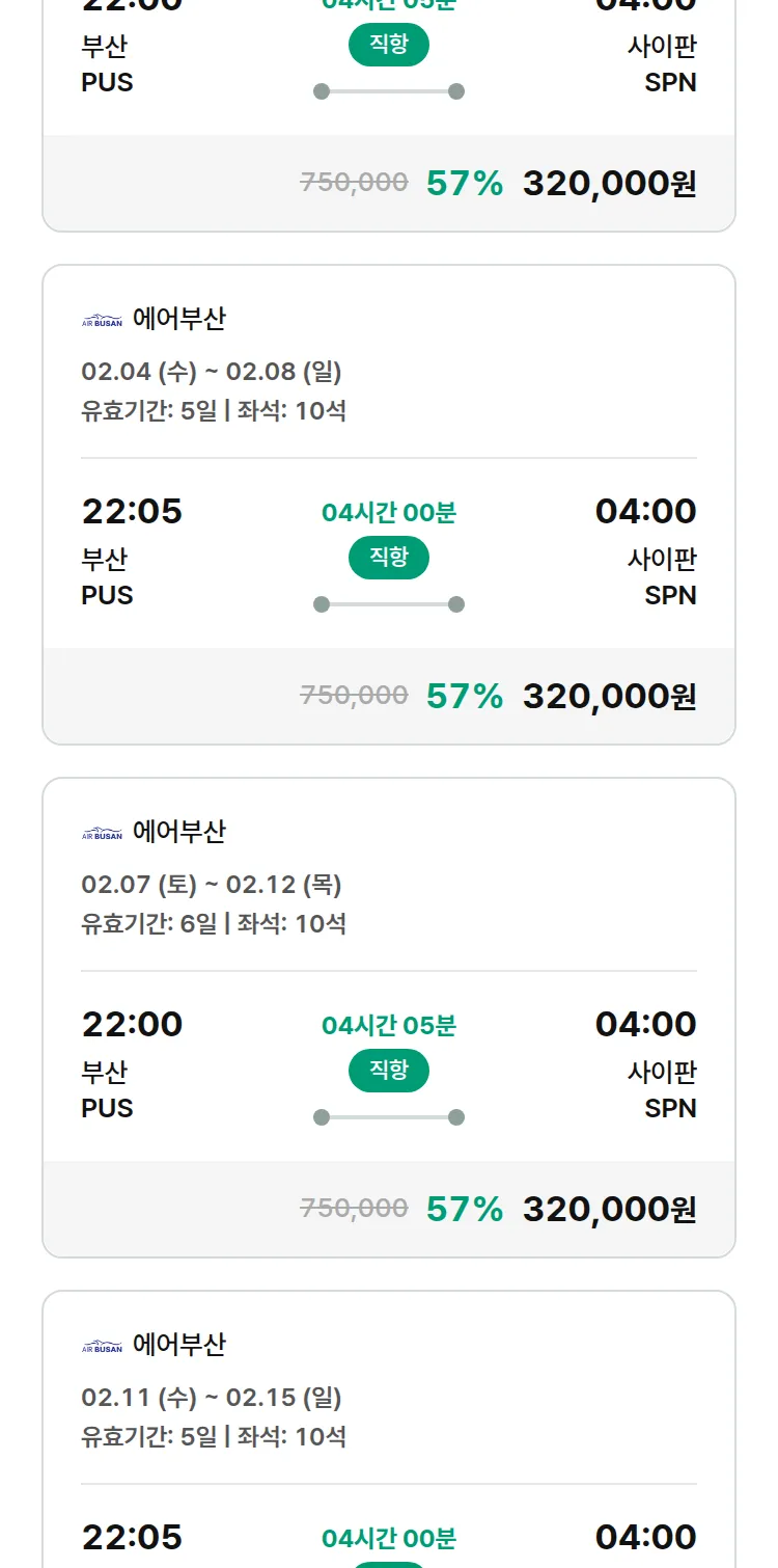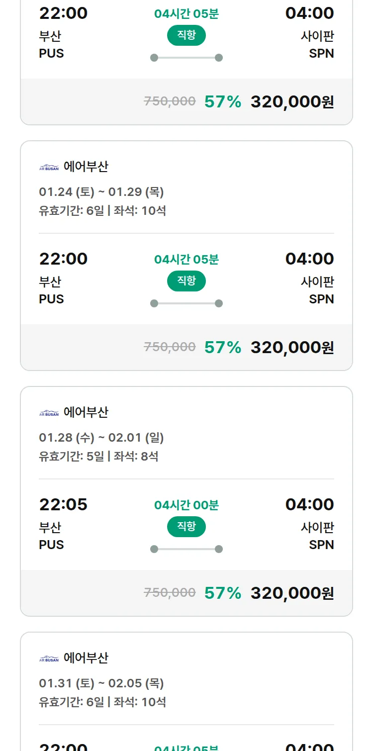 (1월 12일(월)) 땡처리 특가 항공권