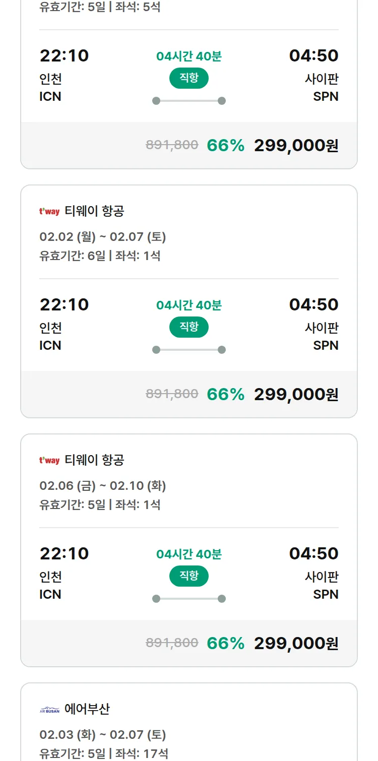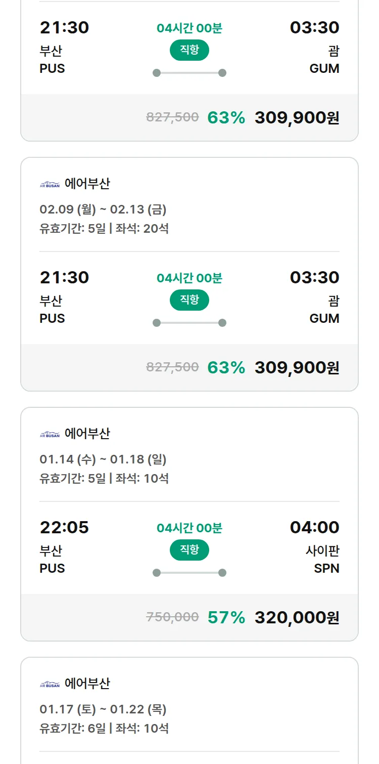 (1월 13일(화)) 땡처리 특가 항공권
