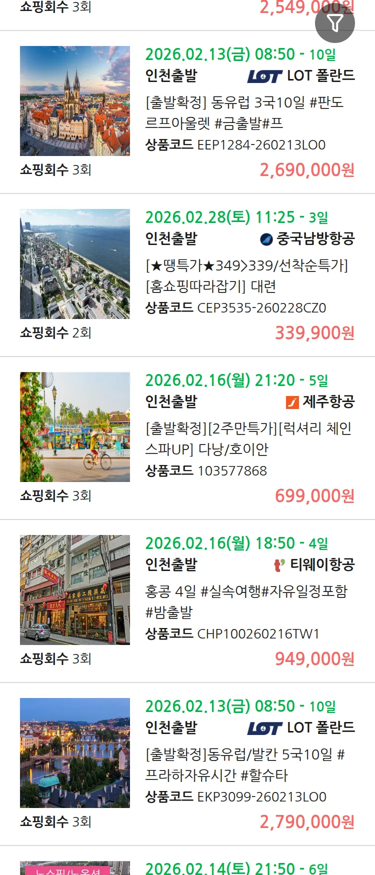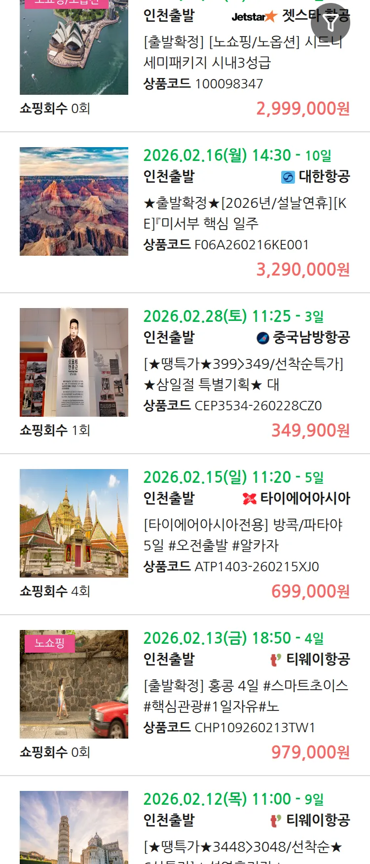 (1월 12일(월)) 땡처리 99.9% 확정 패키지