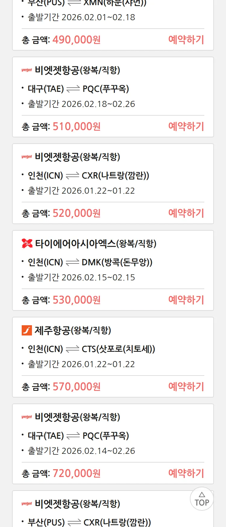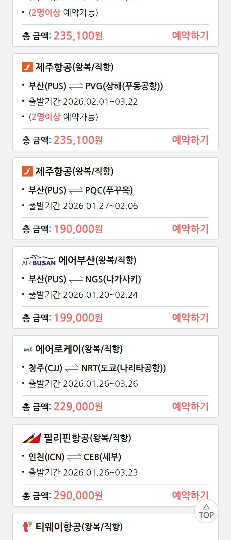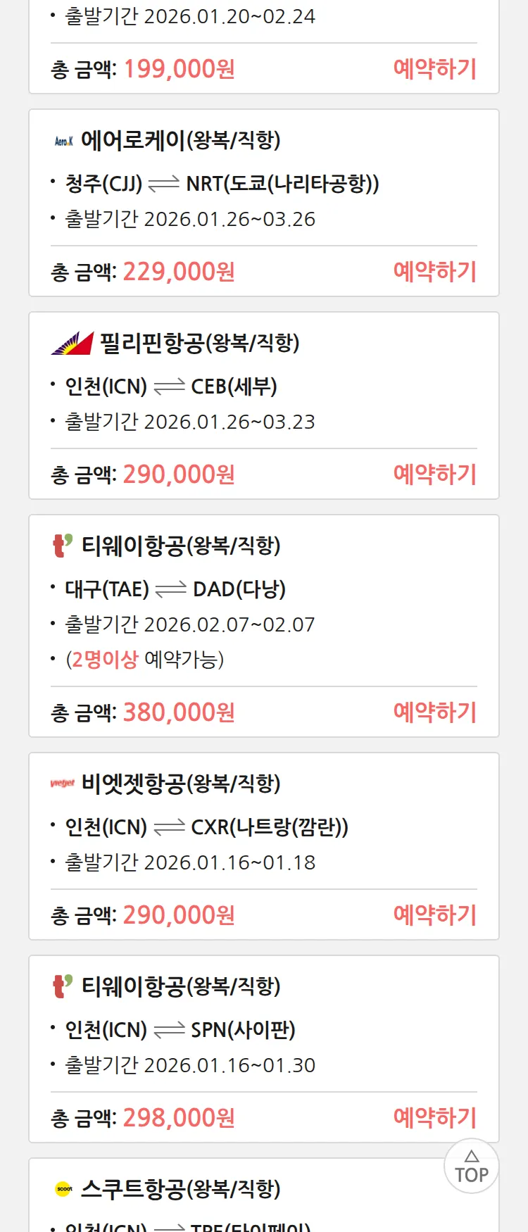 (1월 12일(월)) 땡처리 99.9% 확정 패키지