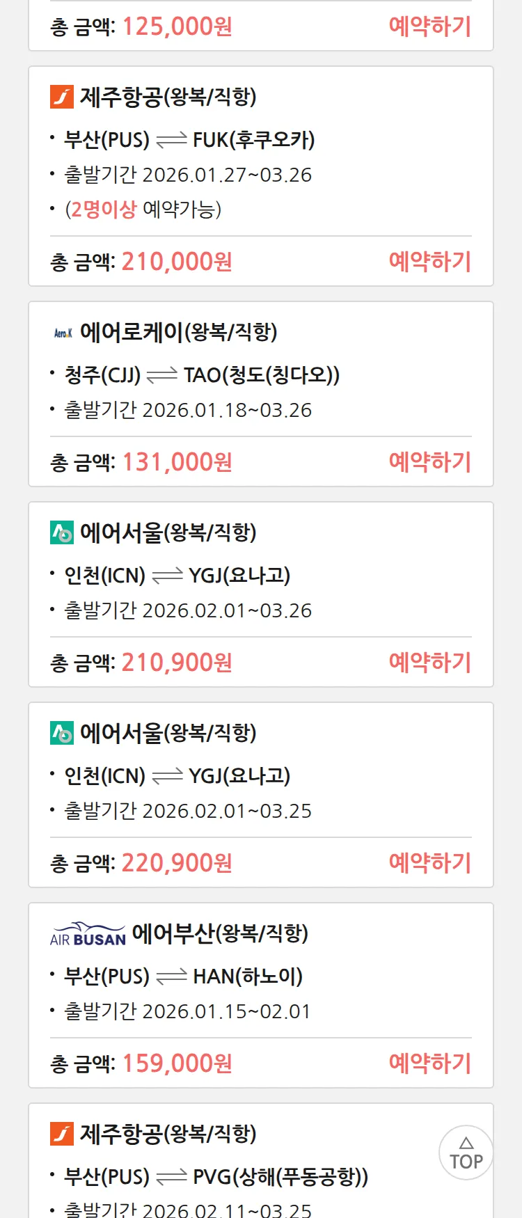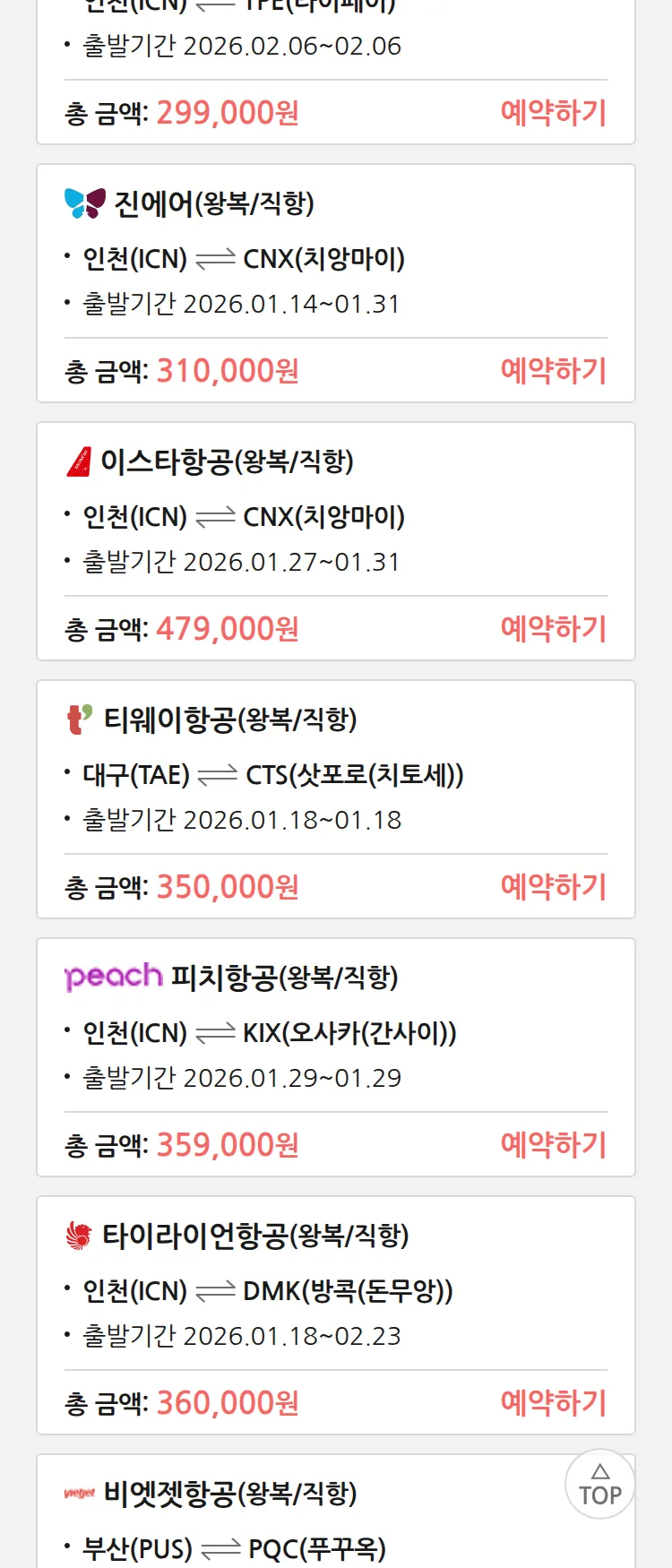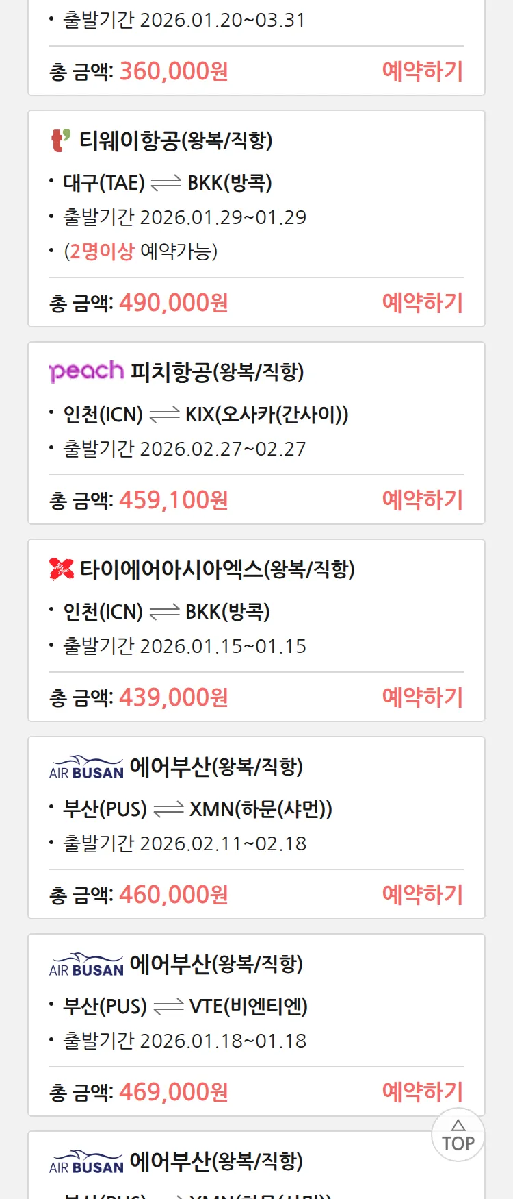 (1월 12일(월)) 땡처리 99.9% 확정 패키지