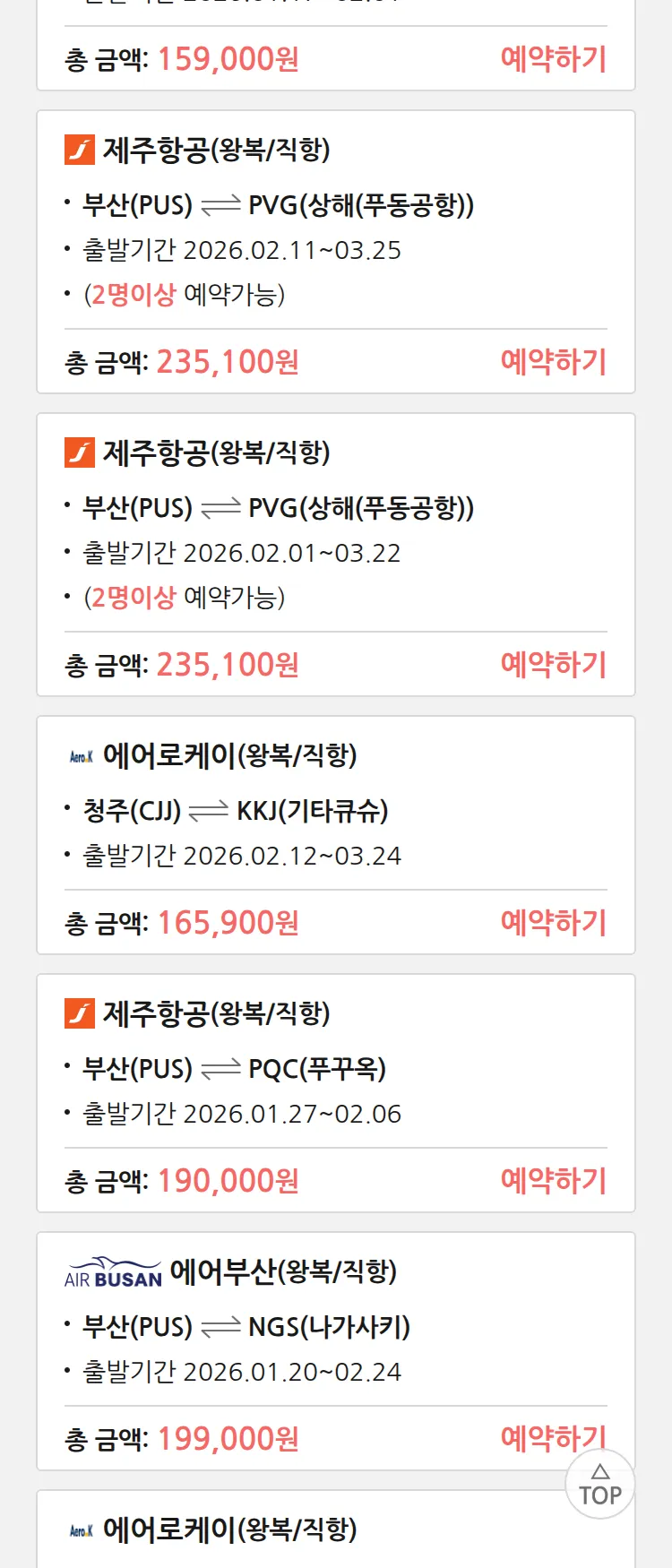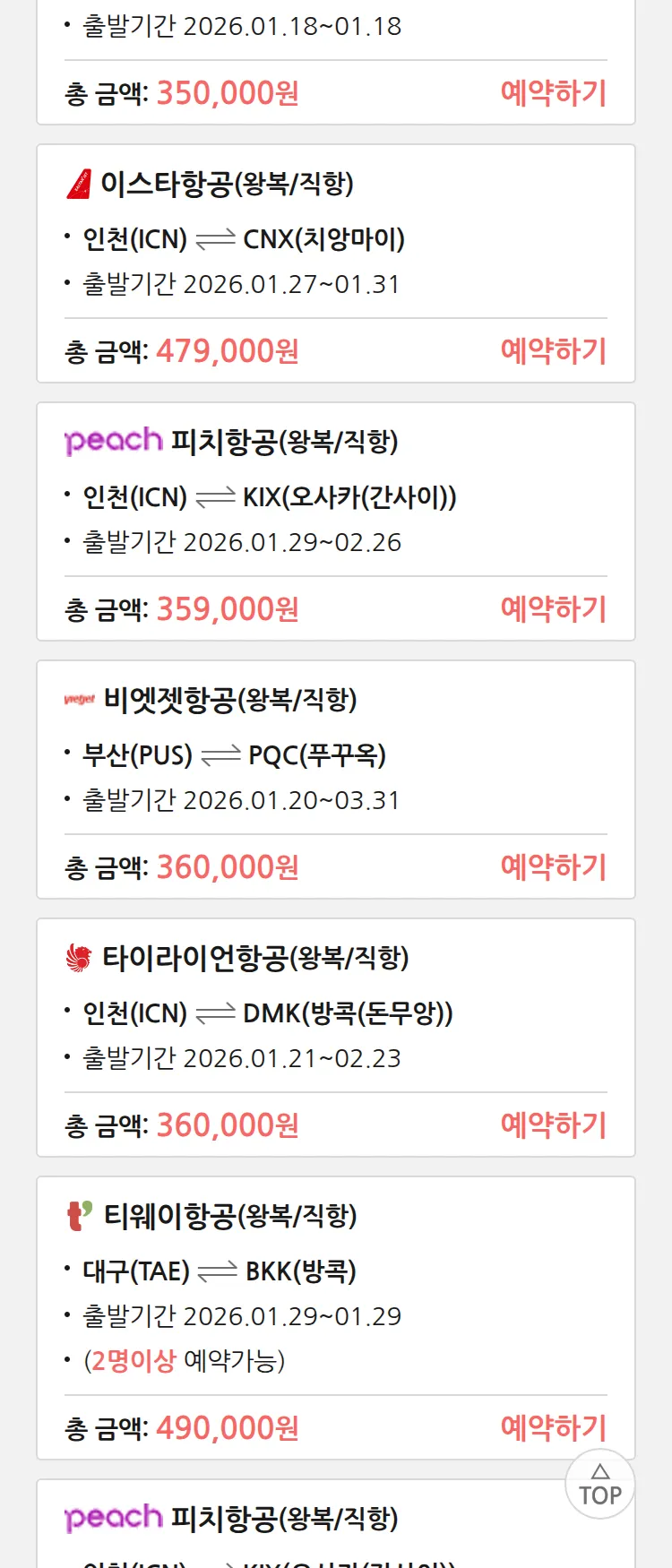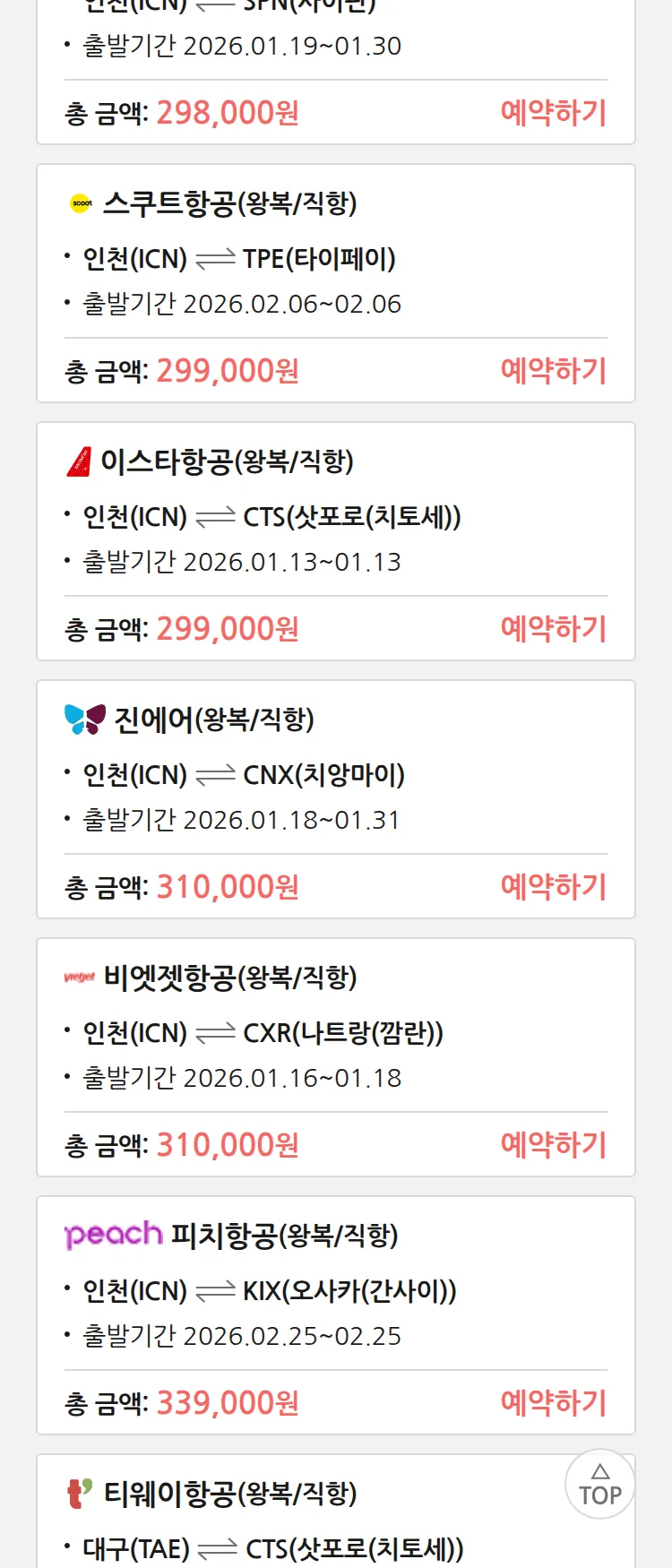 (1월 13일(화)) 땡처리 특가 항공권