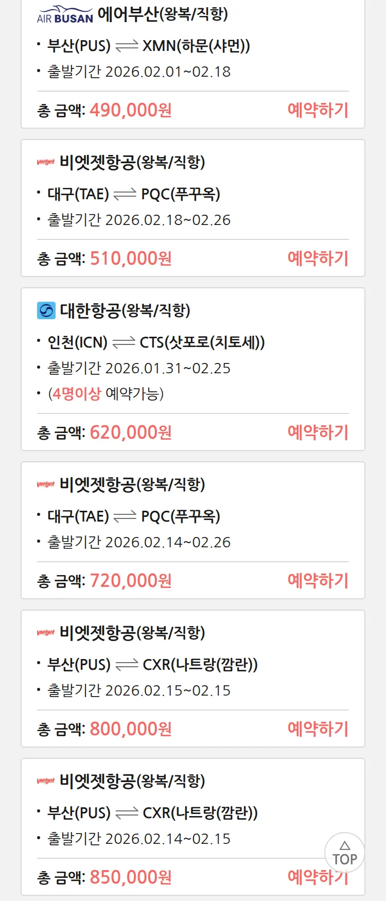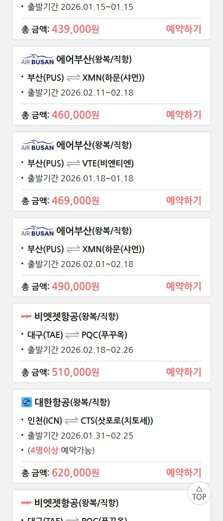 (1월 12일(월)) 땡처리 99.9% 확정 패키지