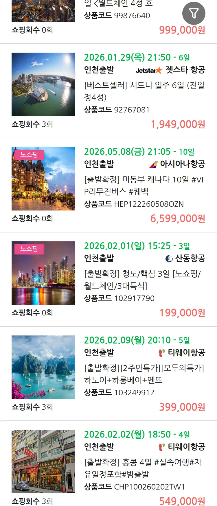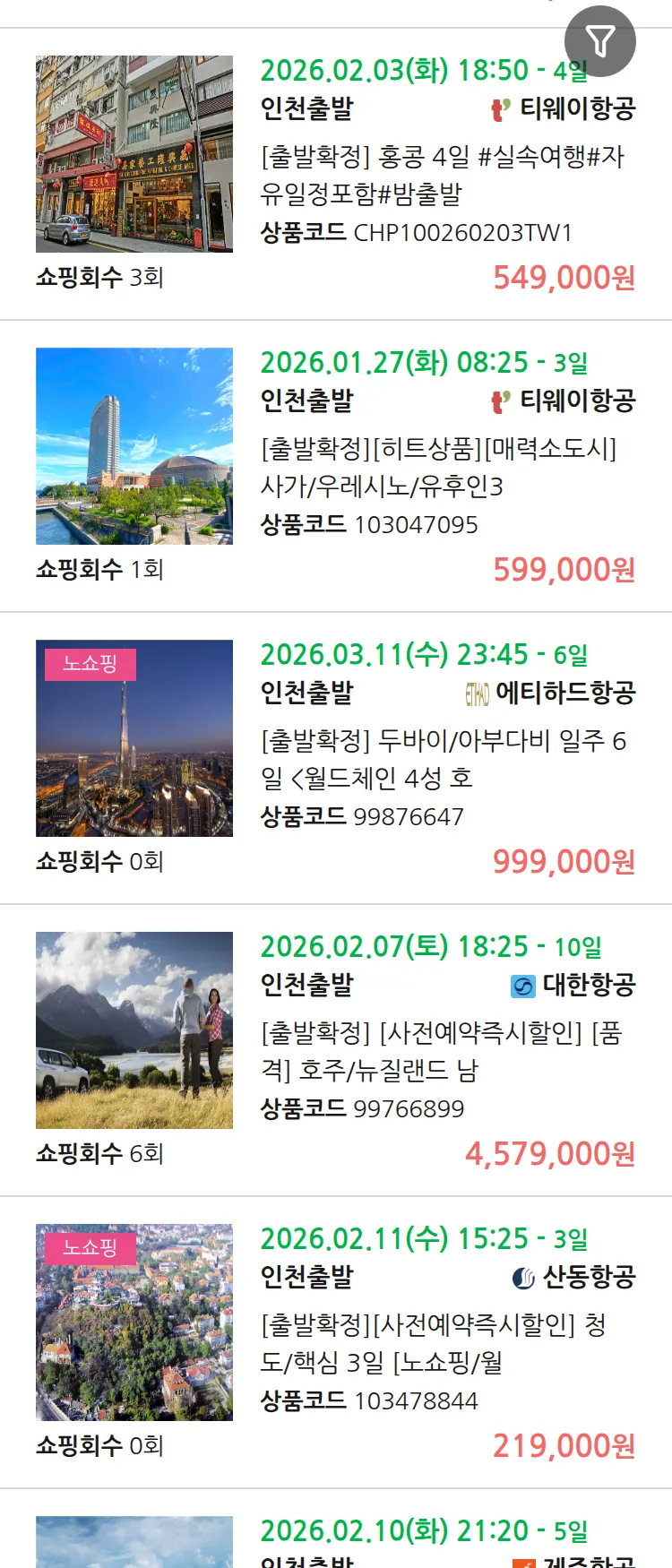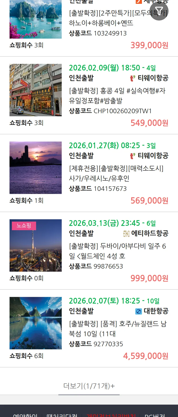 (1월 12일(월)) 땡처리 99.9% 확정 패키지