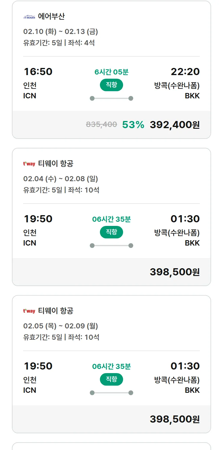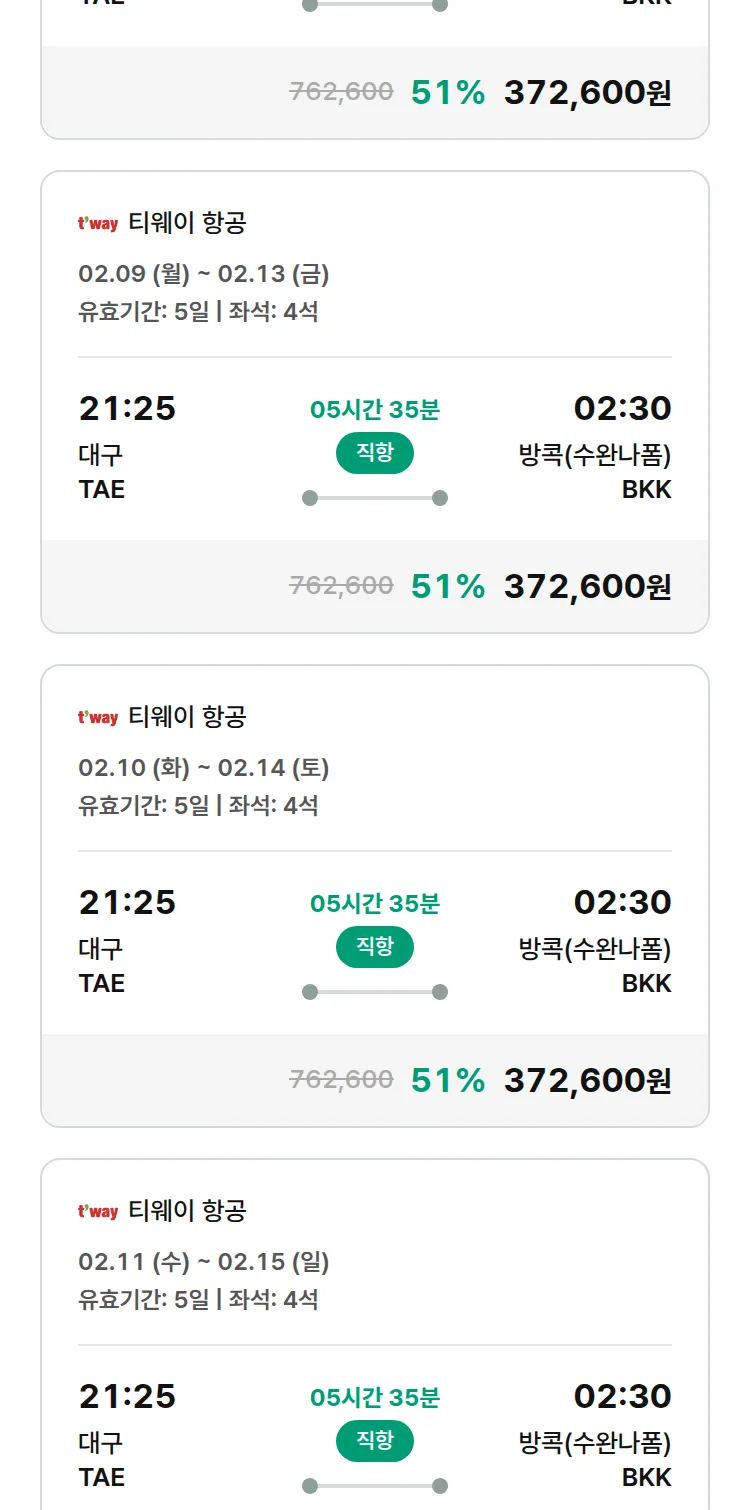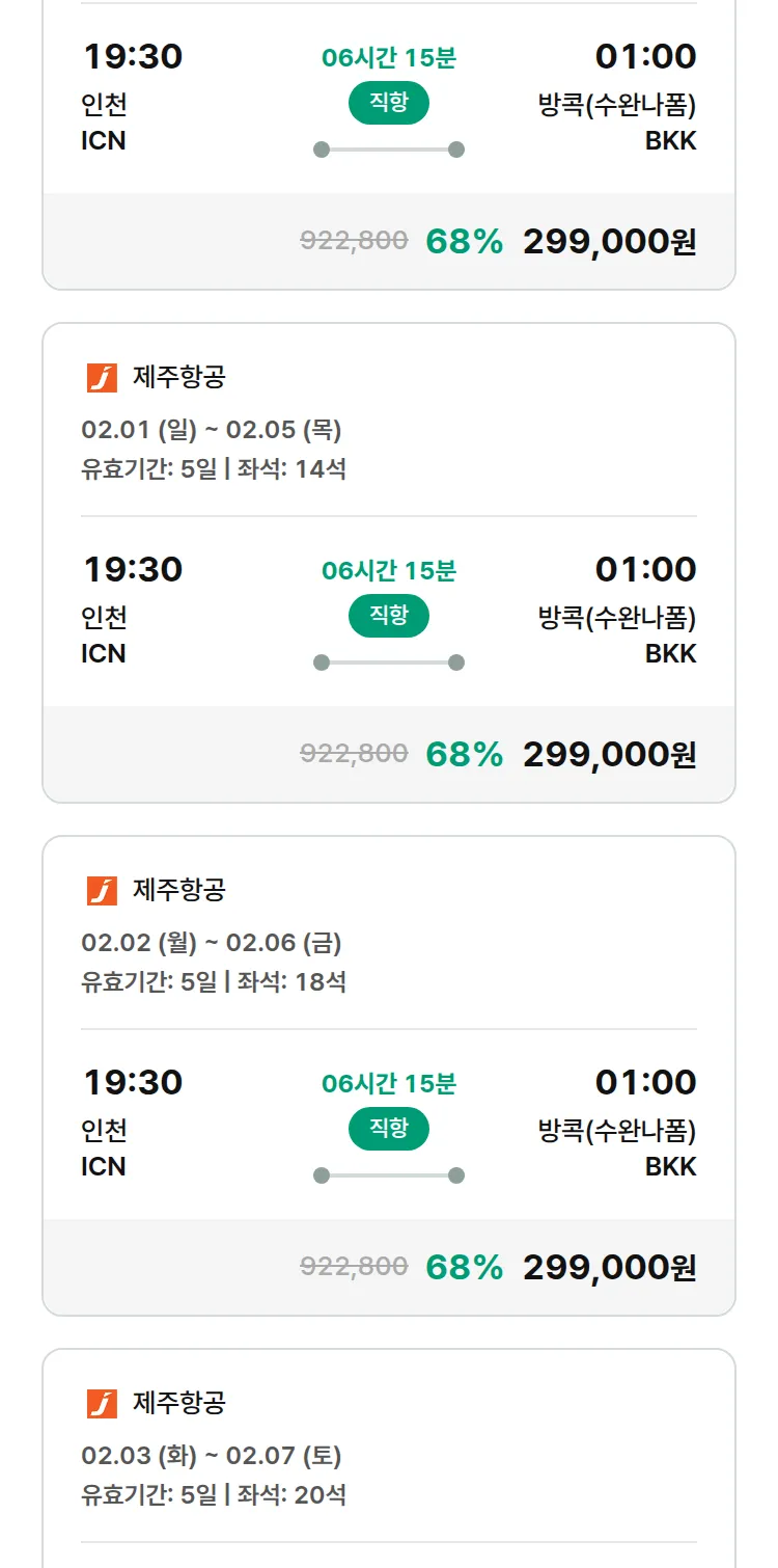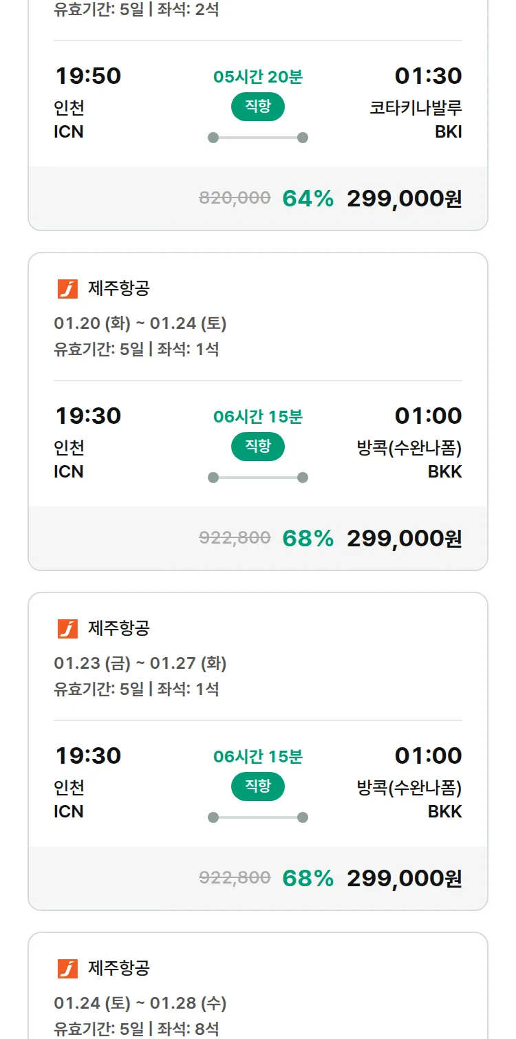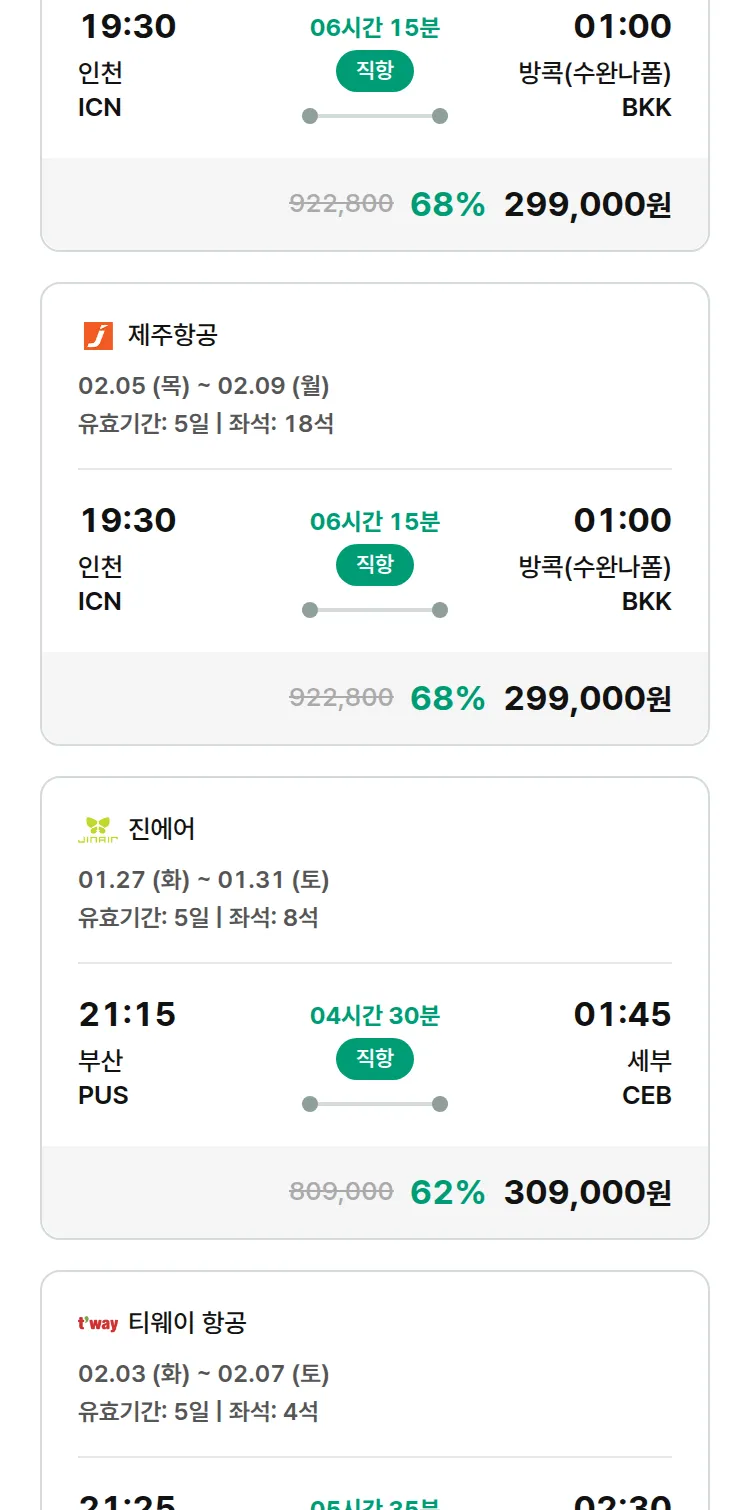 (1월 13일(화)) 땡처리 특가 항공권