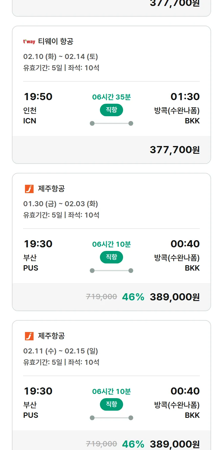 (1월 11일(일)) 땡처리 특가 항공권