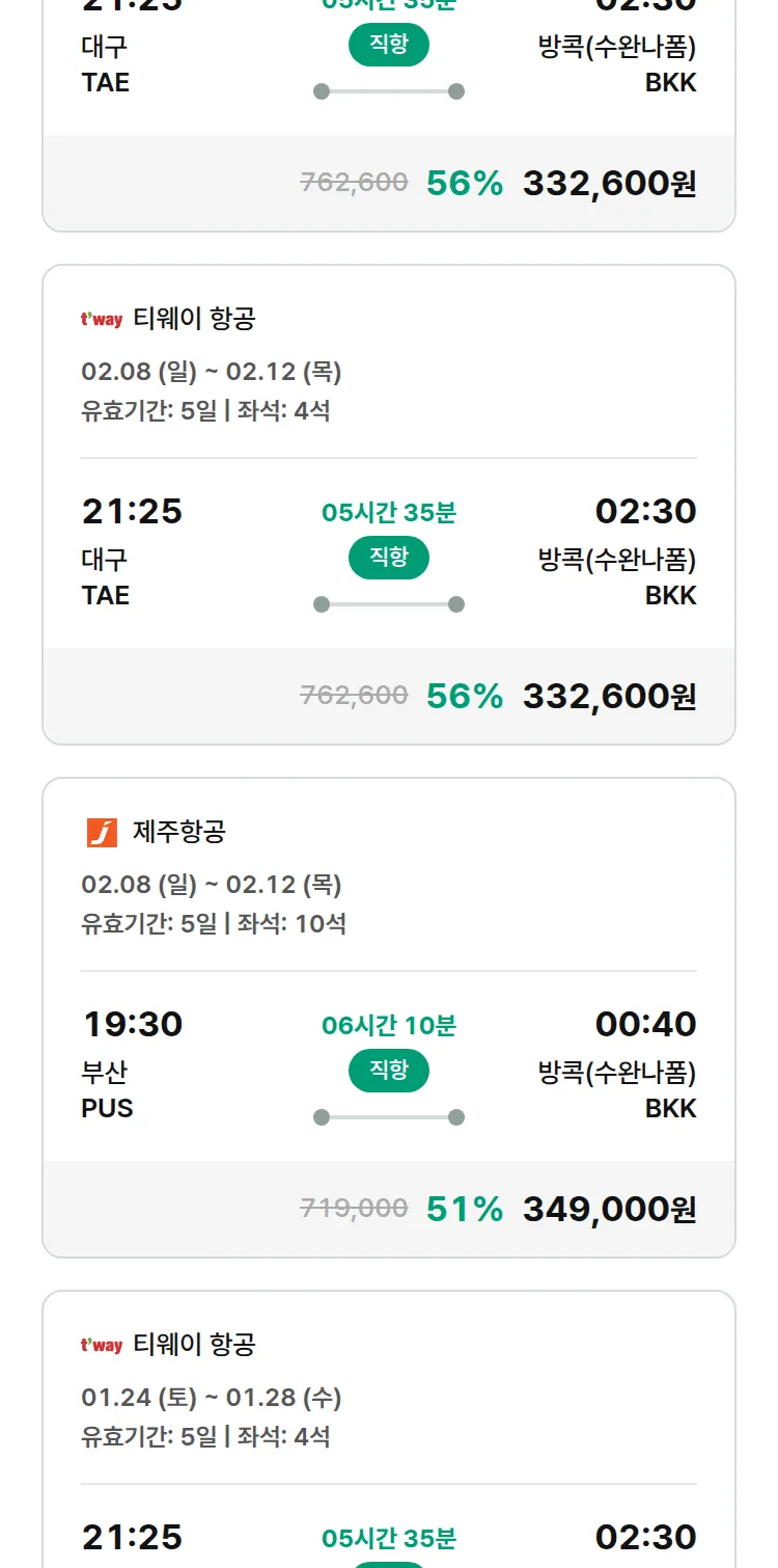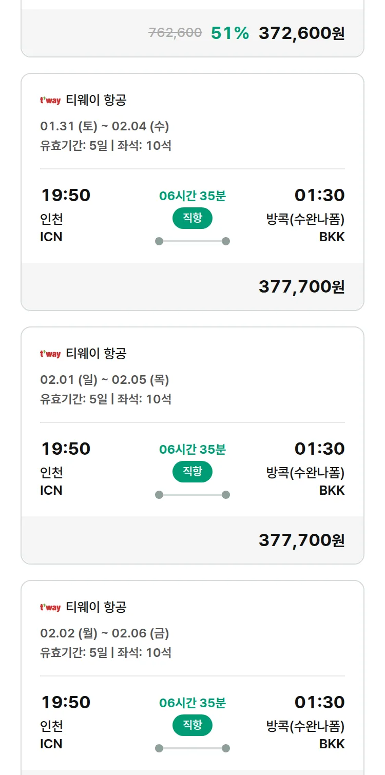 (1월 12일(월)) 땡처리 특가 항공권