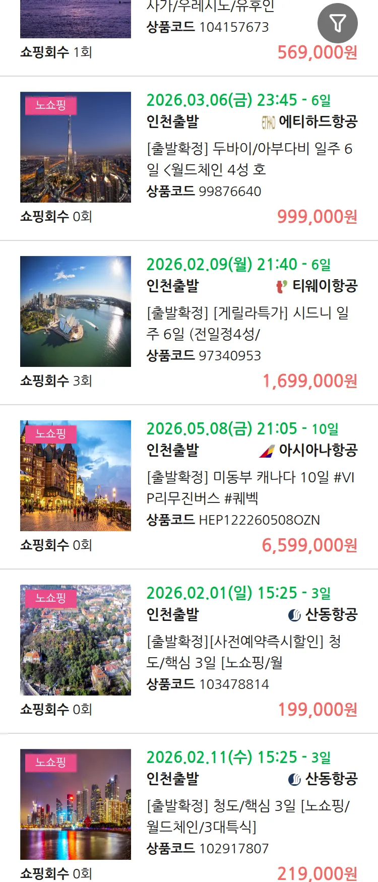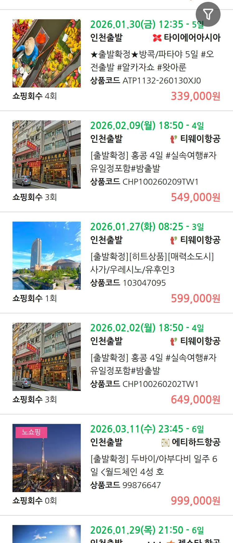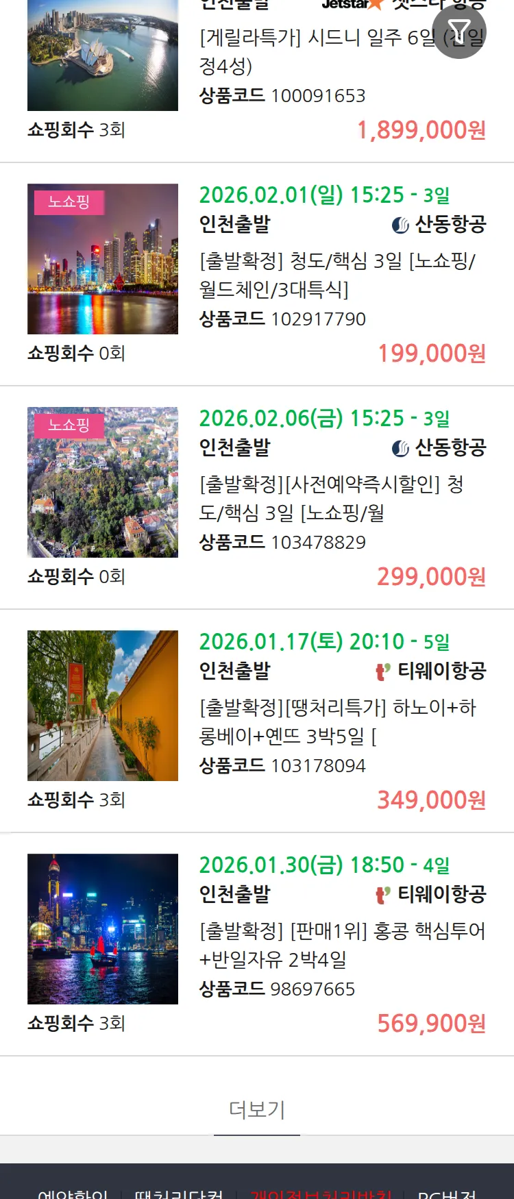 (1월 14일(수)) 땡처리 99.9% 확정 패키지