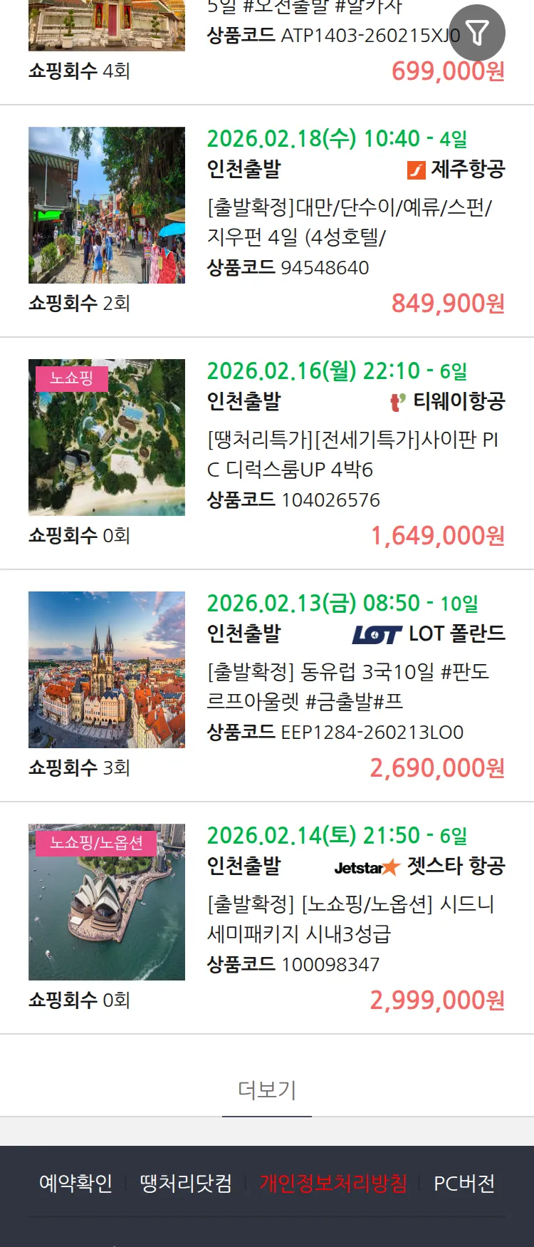 (1월 15일(목)) 땡처리 99.9% 확정 패키지