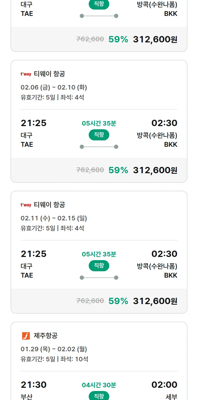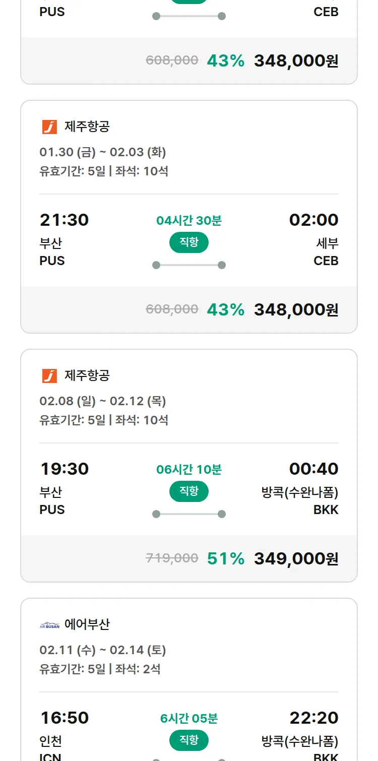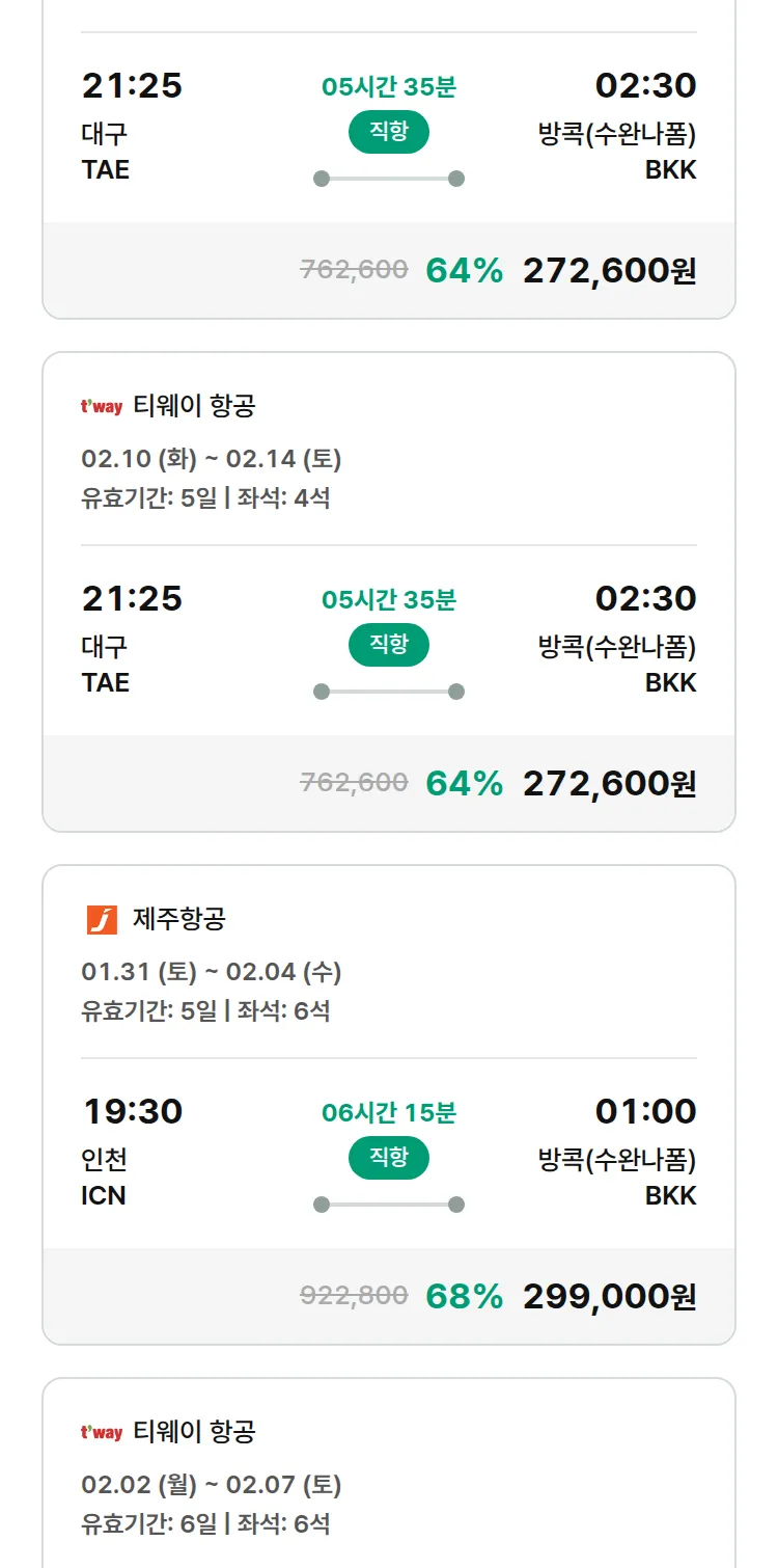 (1월 16일(금)) 땡처리 특가 항공권