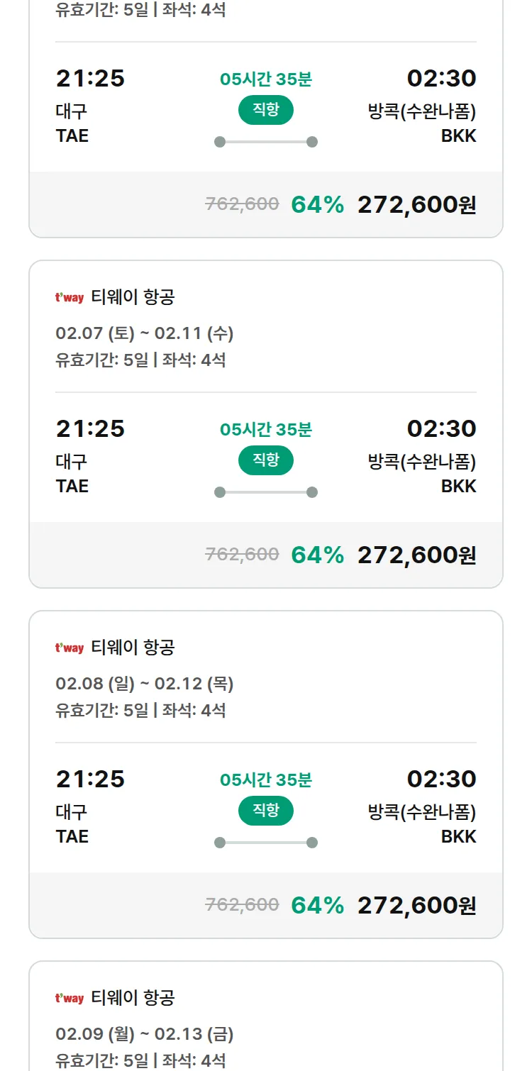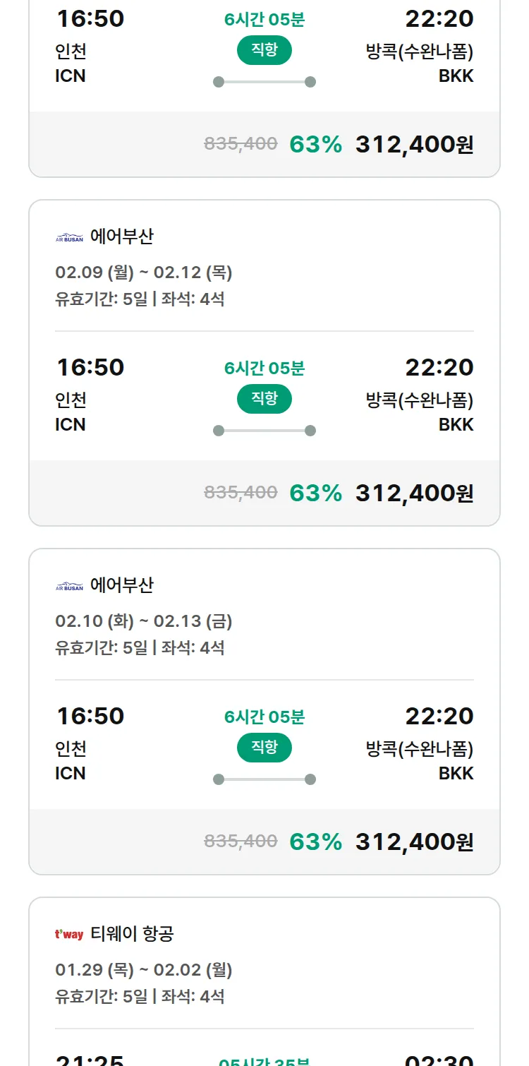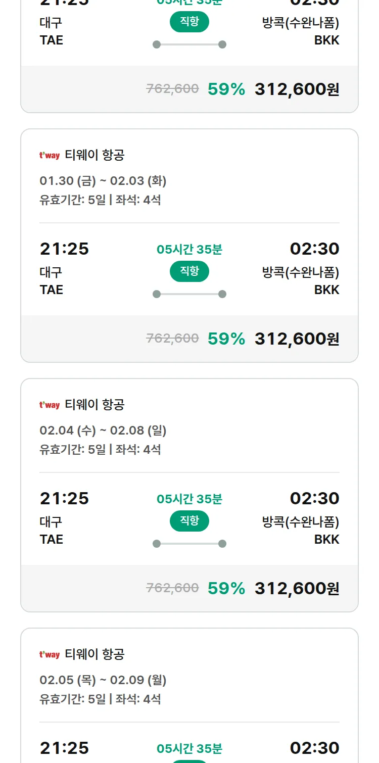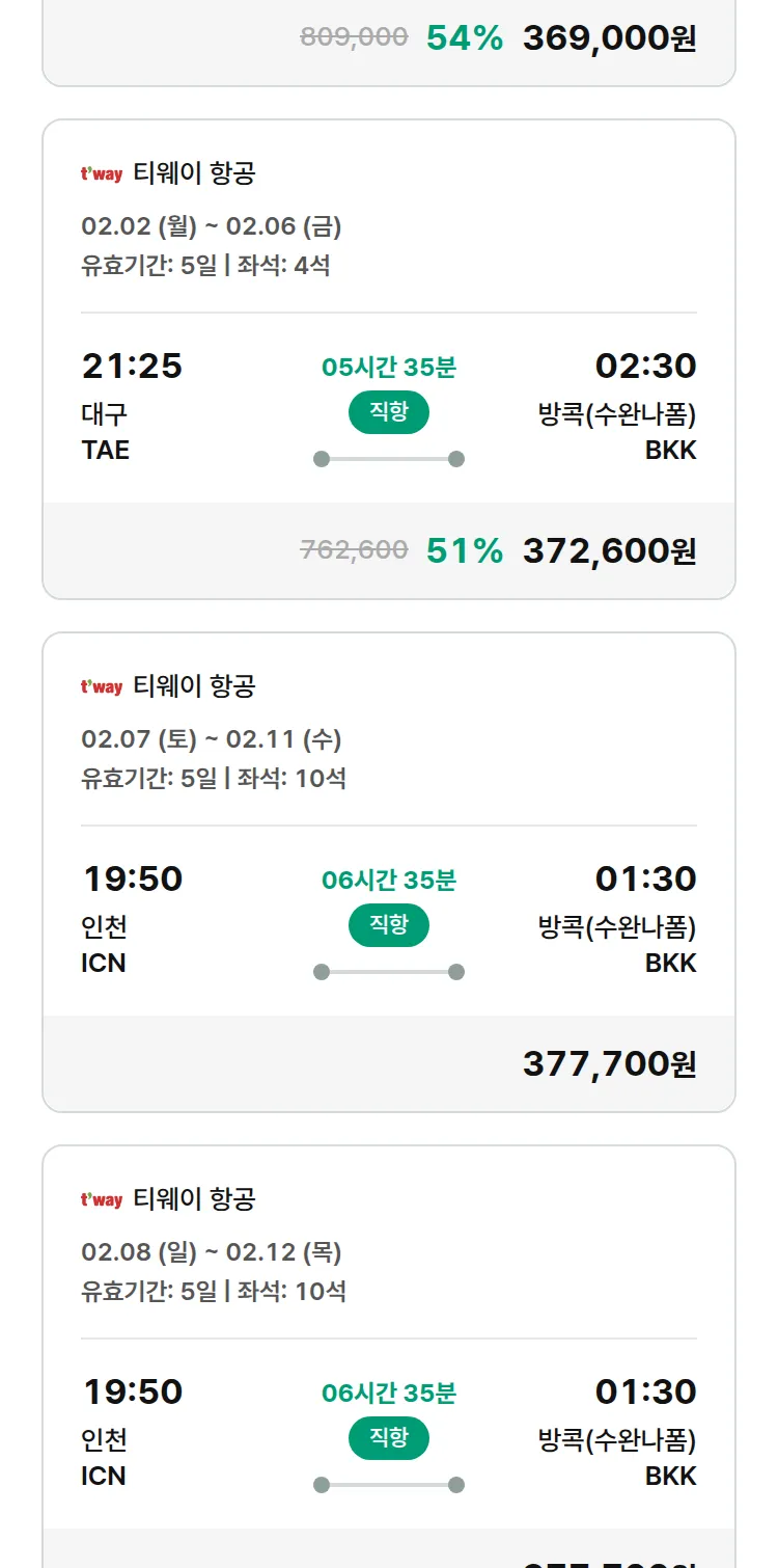 (1월 16일(금)) 땡처리 특가 항공권