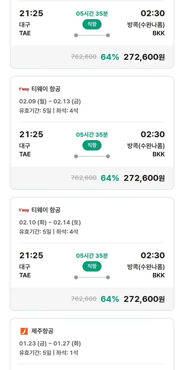 (1월 15일(목)) 땡처리 연휴 패키지 패키지