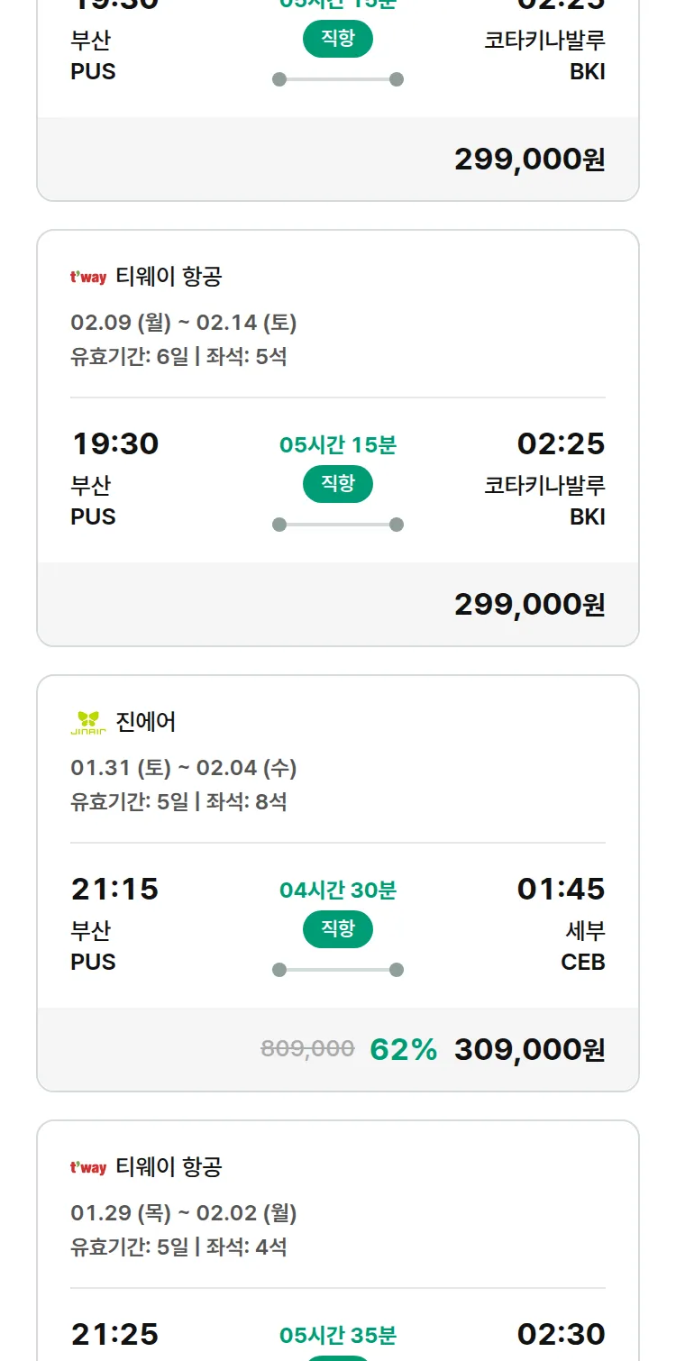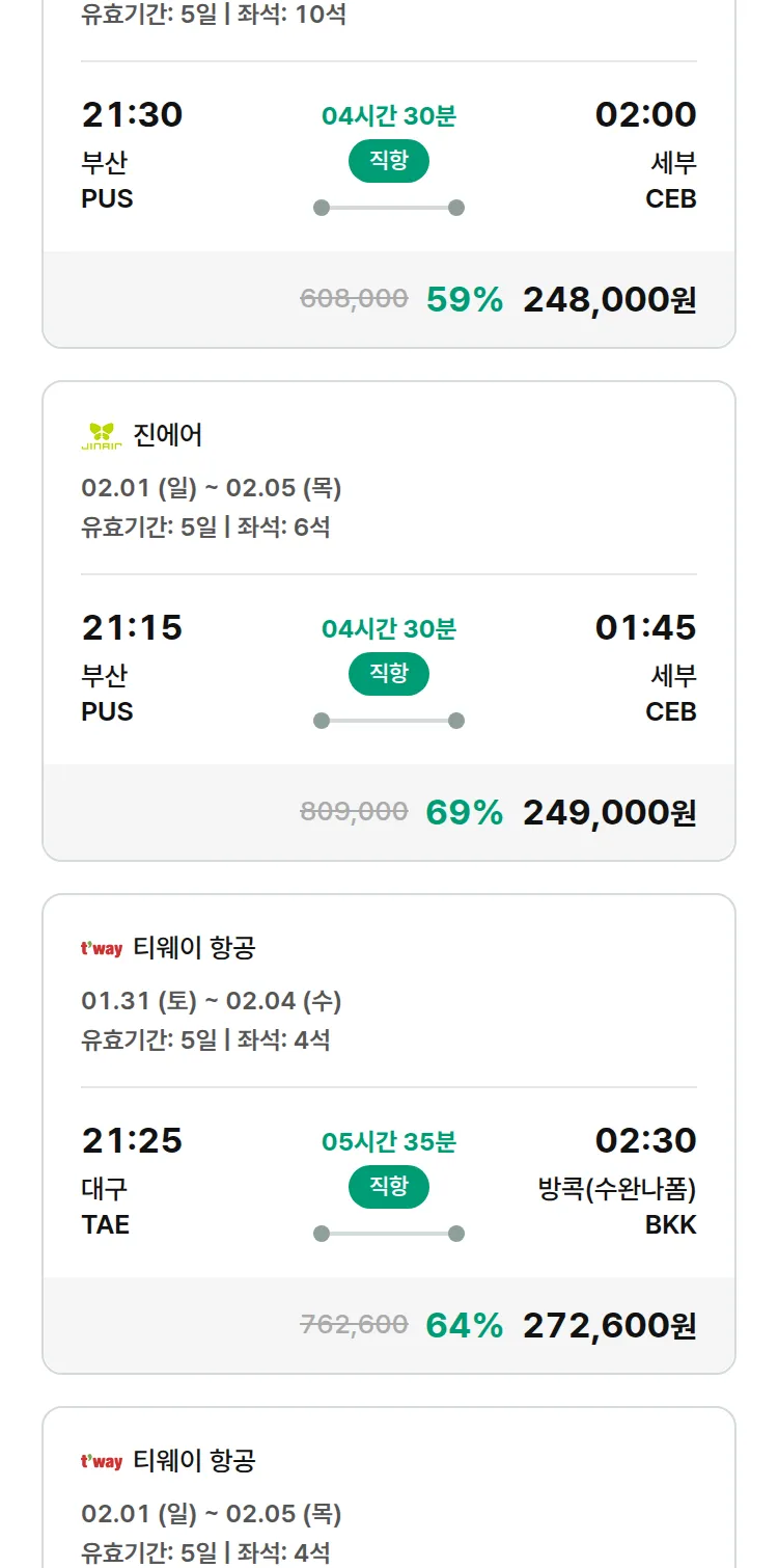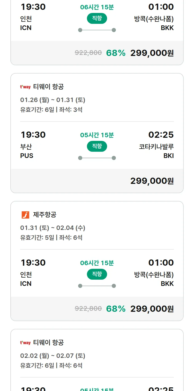 (1월 15일(목)) 땡처리 99.9% 확정 패키지