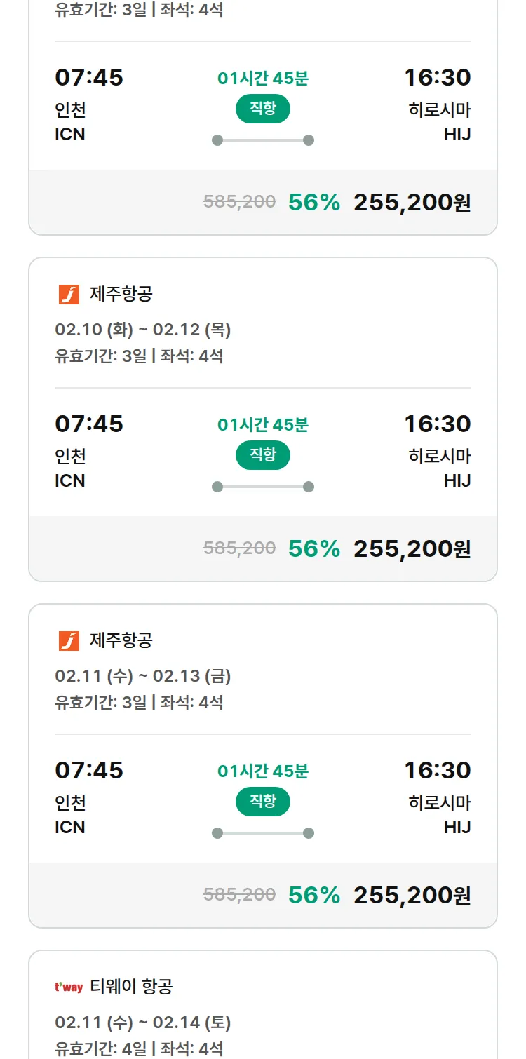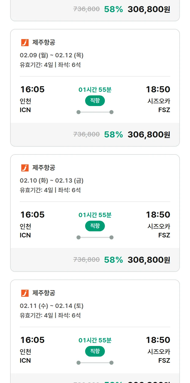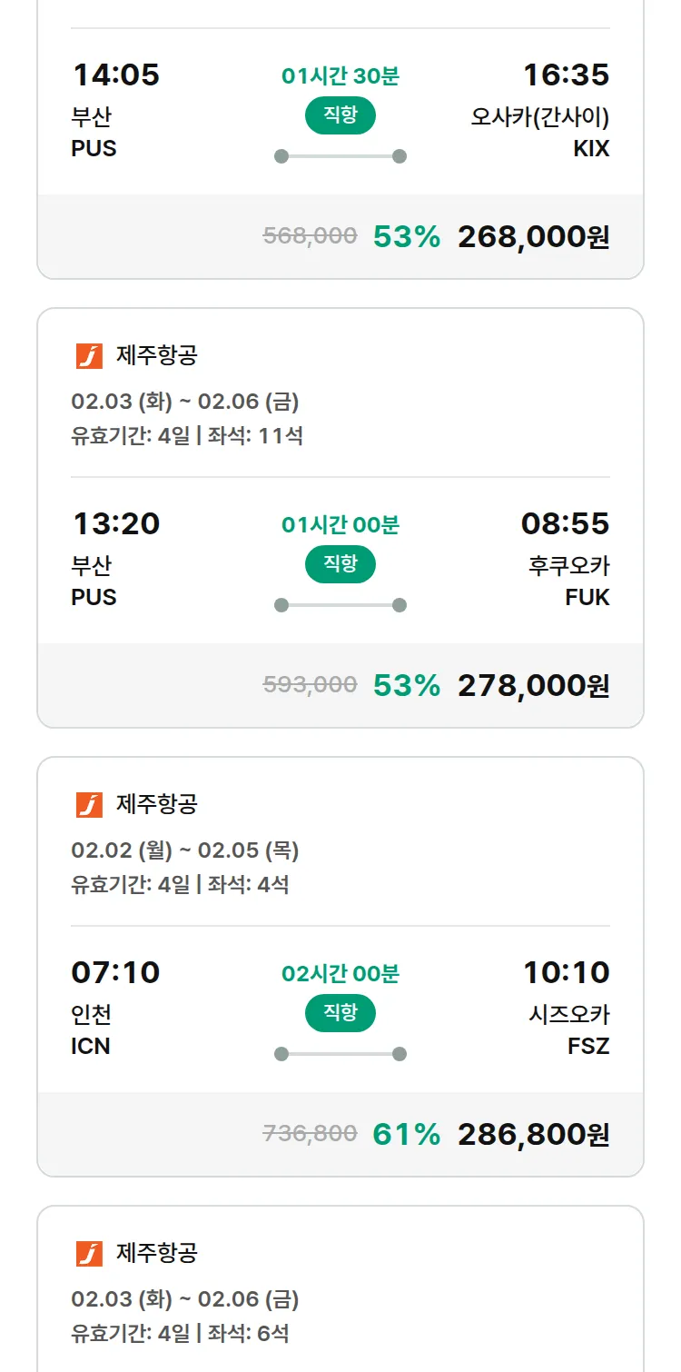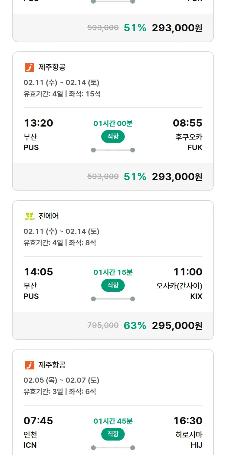 (1월 16일(금)) 모두투어 일본 특가 항공권