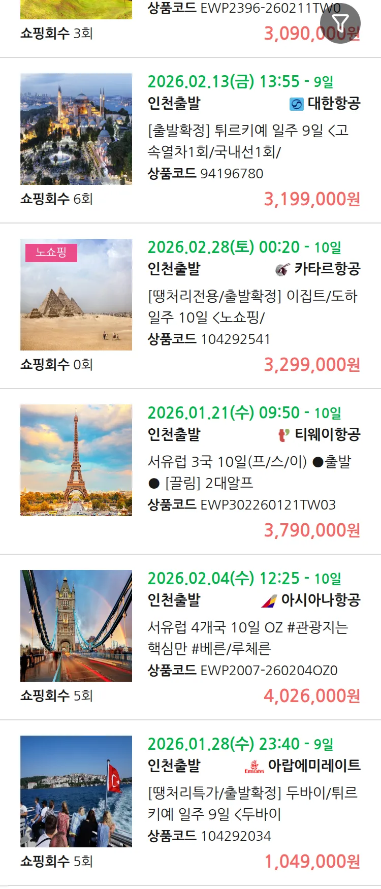 (1월 16일(금)) 땡처리 유럽 긴급 패키지