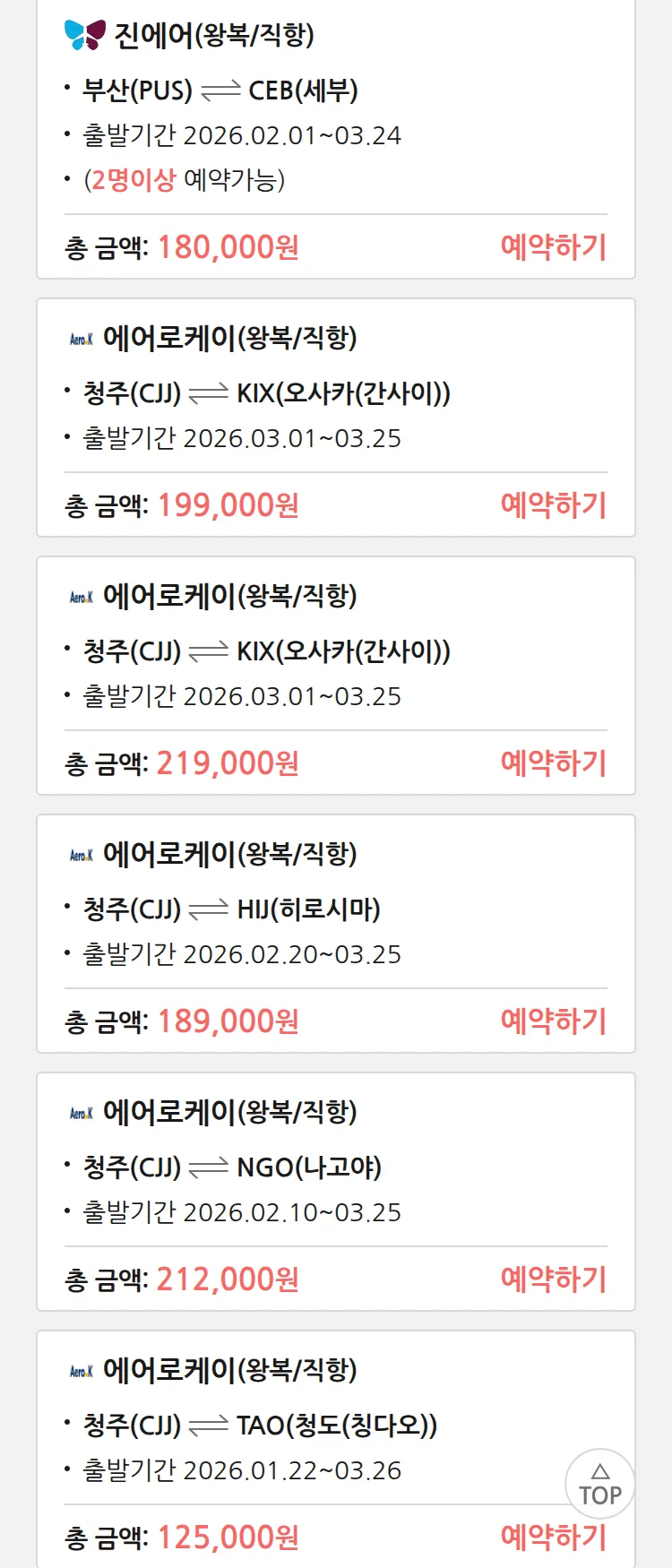 (1월 16일(금)) 땡처리 99.9% 확정 패키지