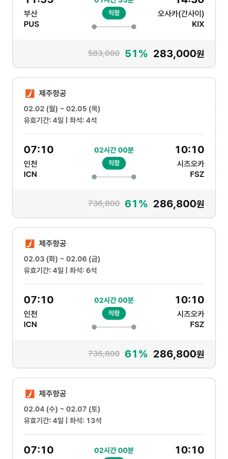 (1월 17일(토)) 모두투어 일본 특가 항공권