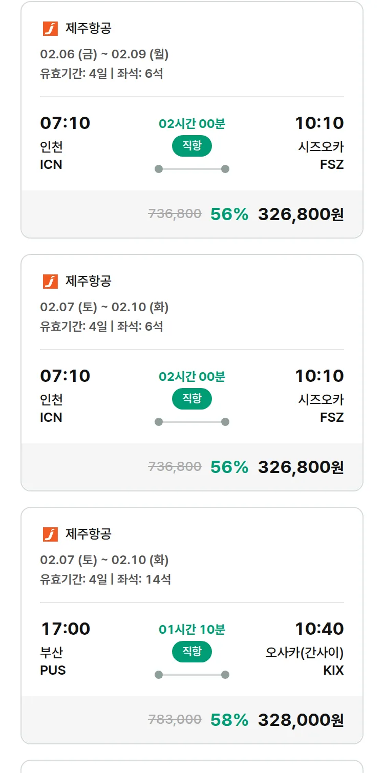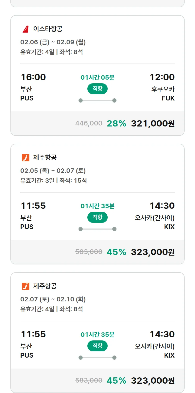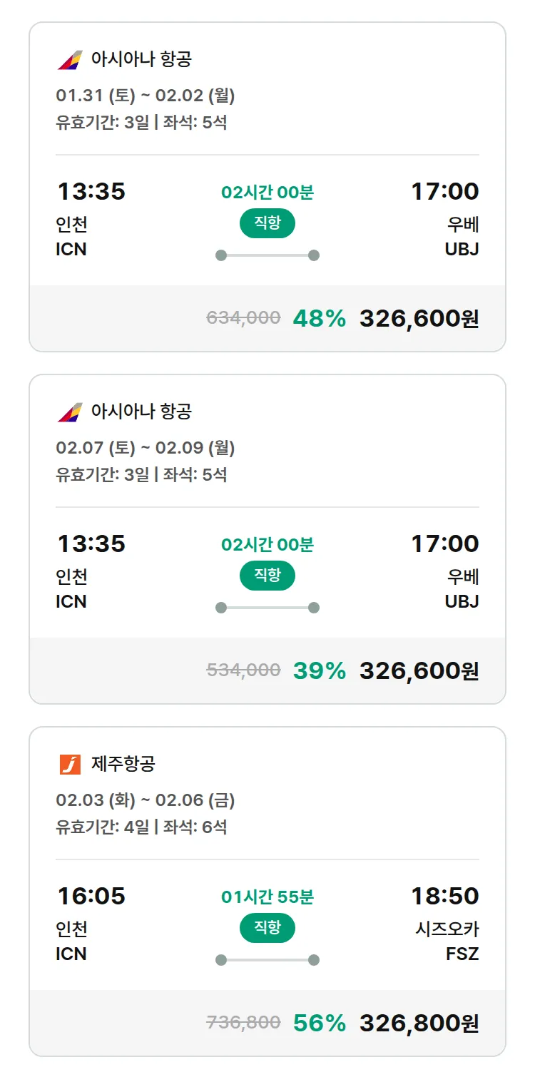 (1월 16일(금)) 모두투어 일본 특가 항공권