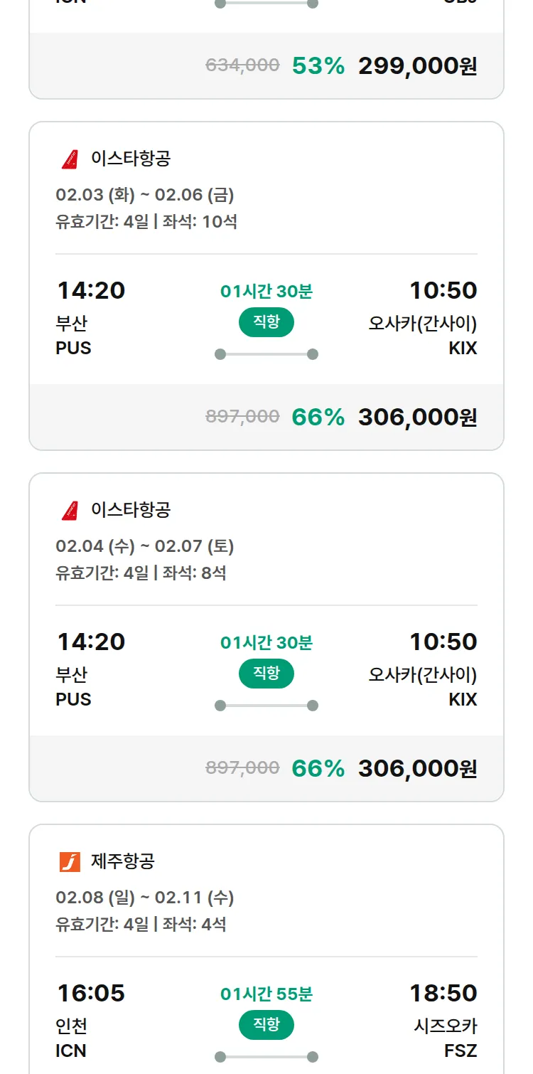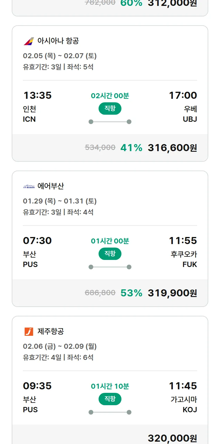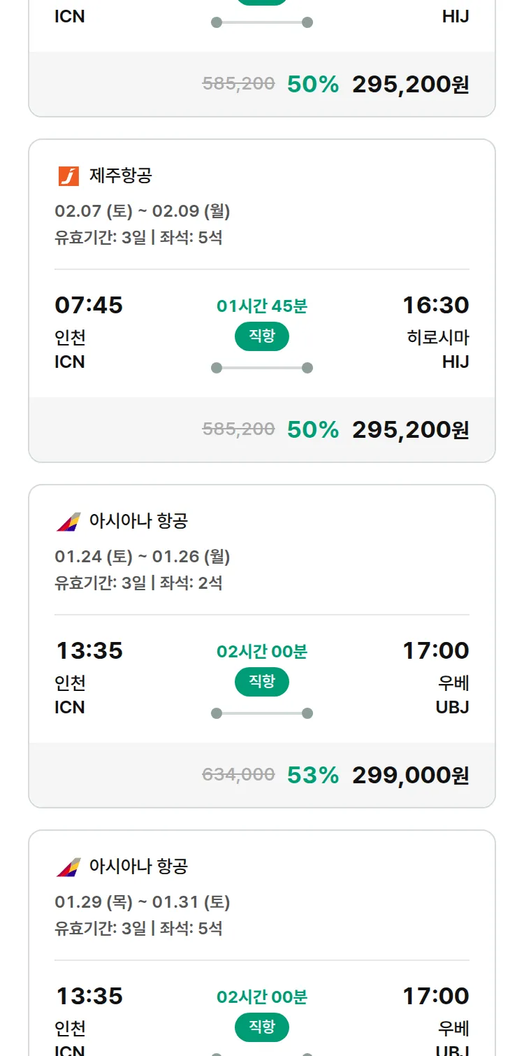 (1월 16일(금)) 모두투어 일본 특가 항공권