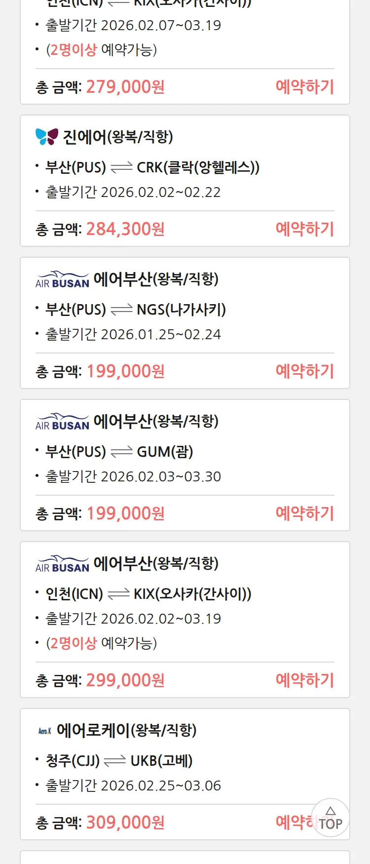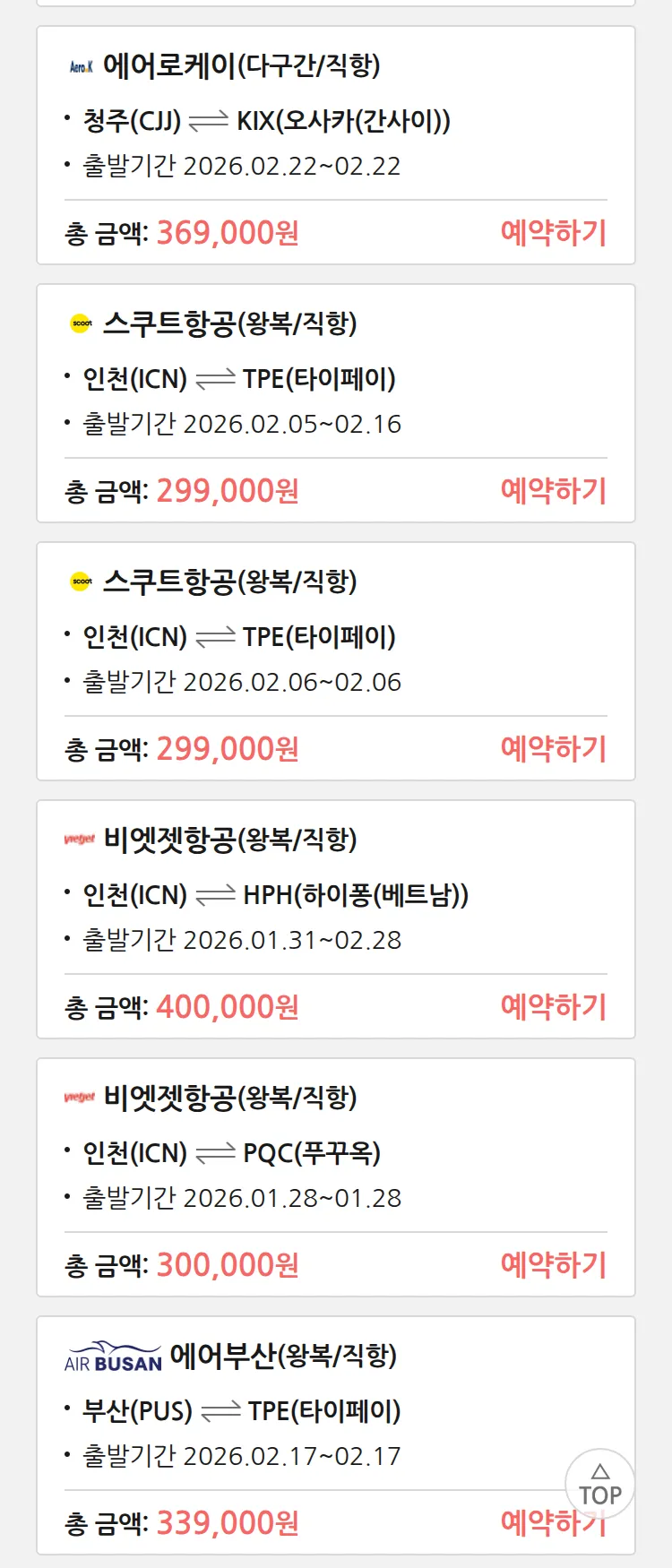 (1월 18일(일)) 땡처리 99.9% 확정 패키지