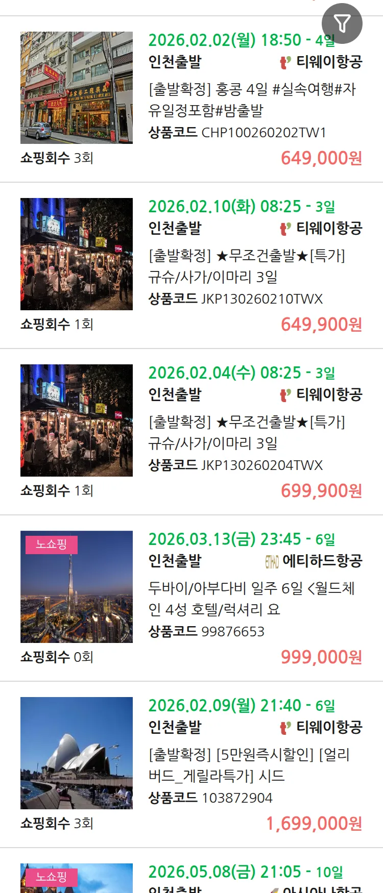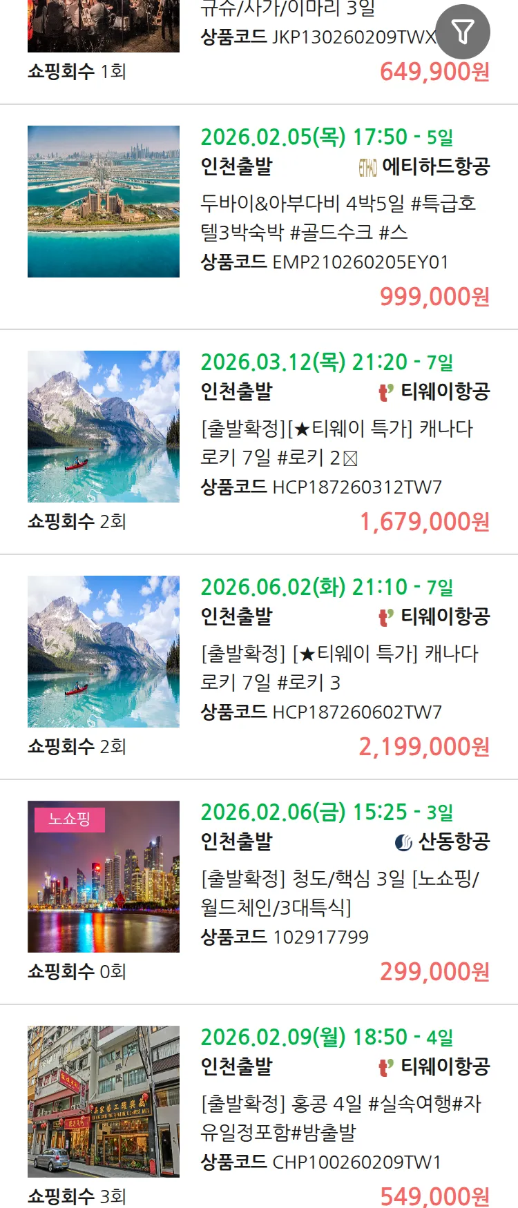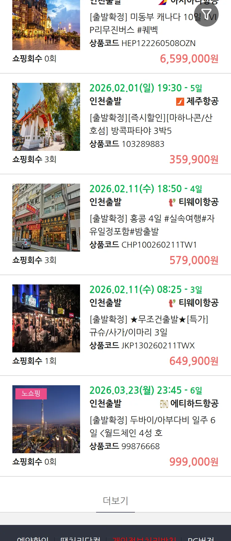 (1월 18일(일)) 땡처리 99.9% 확정 패키지