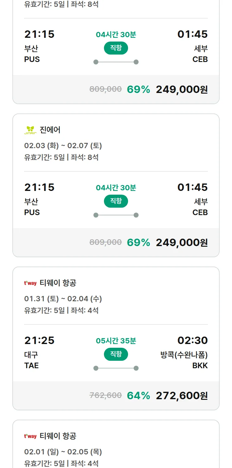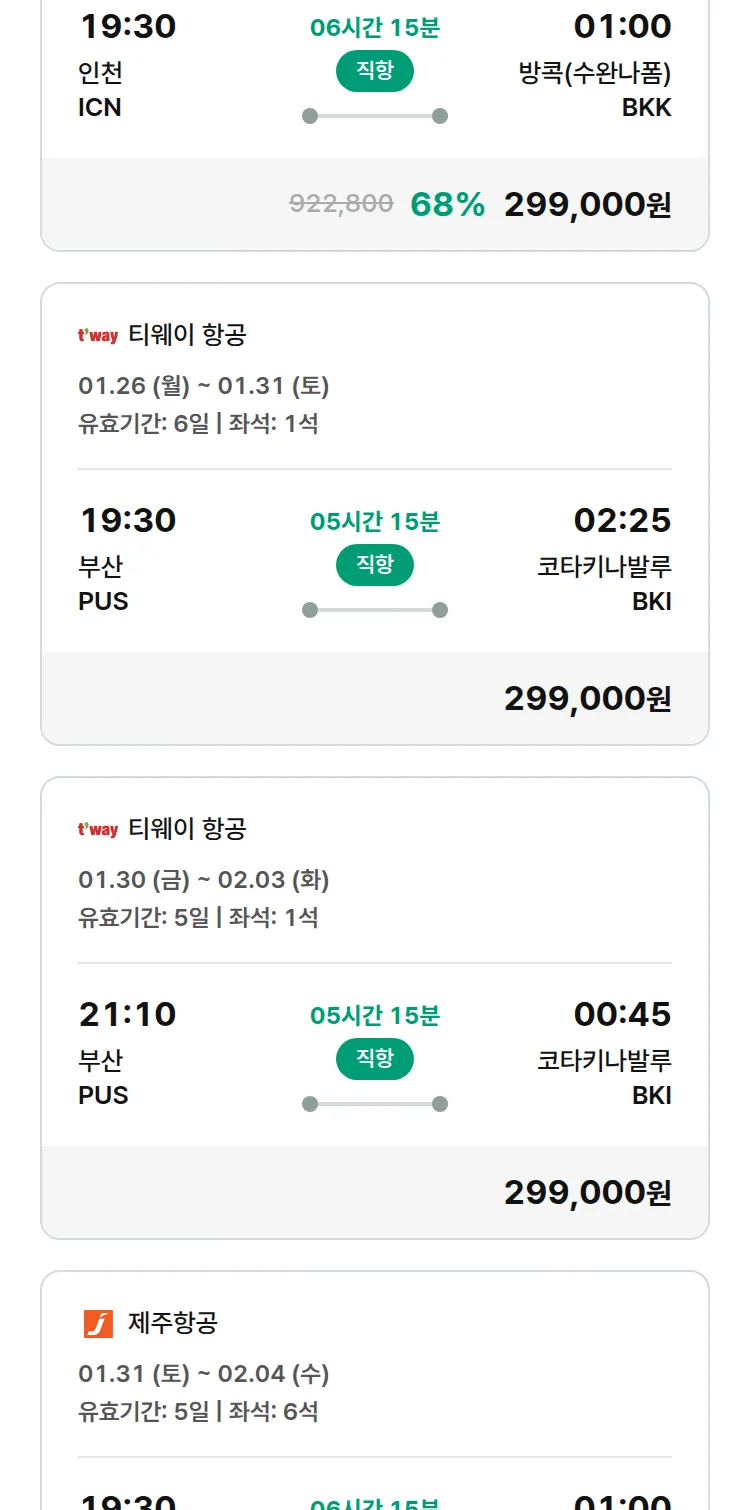 (1월 19일(월)) 땡처리 99.9% 확정 패키지