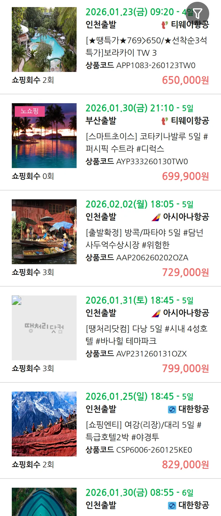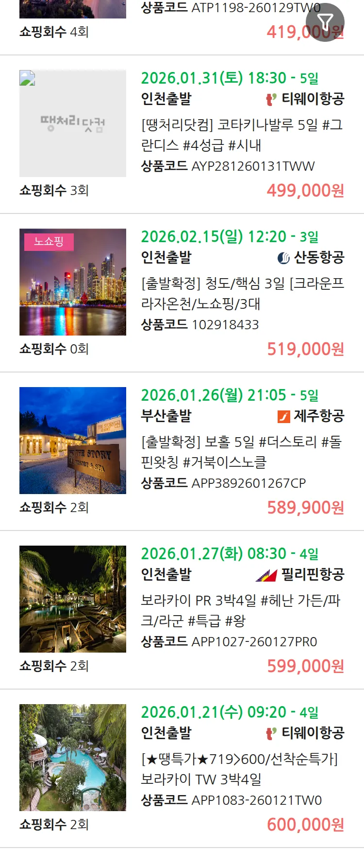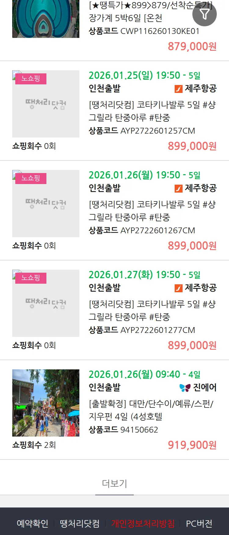 (1월 19일(월)) 땡처리 99.9% 확정 패키지
