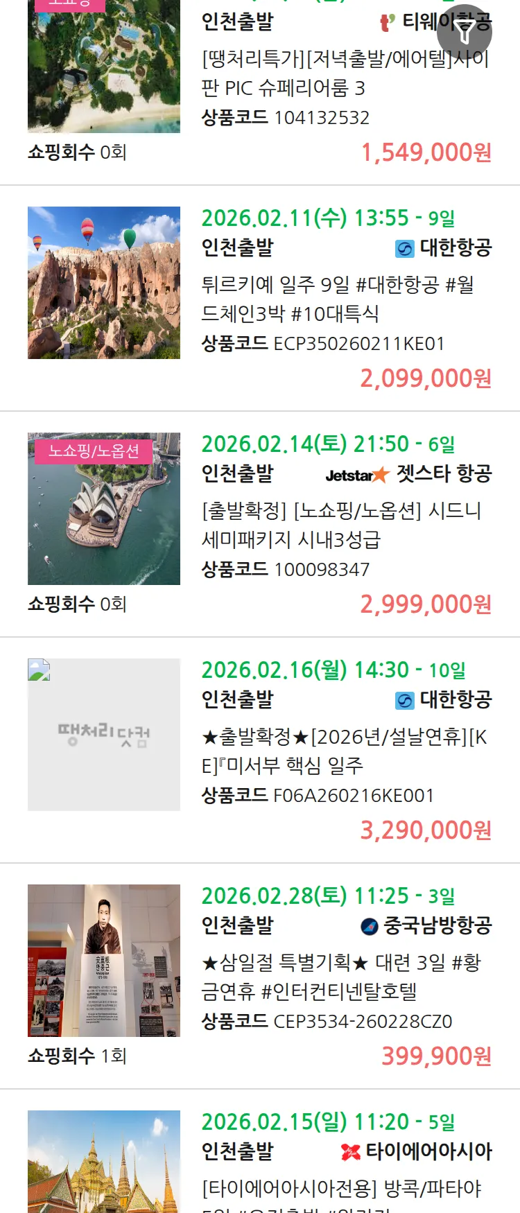(1월 19일(월)) 땡처리 연휴 패키지 패키지