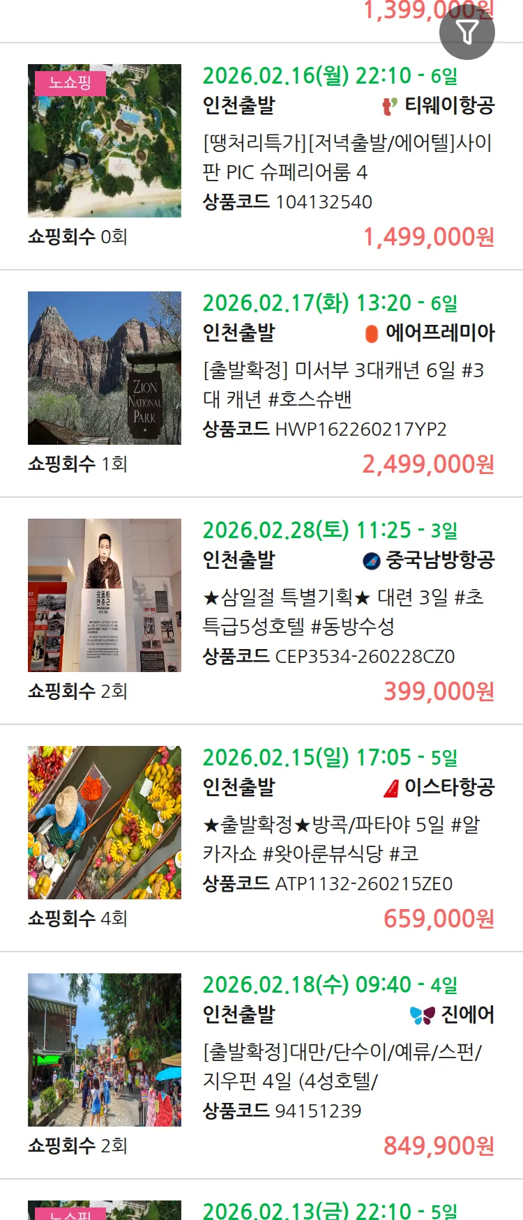 (1월 20일(화)) 땡처리 99.9% 확정 패키지