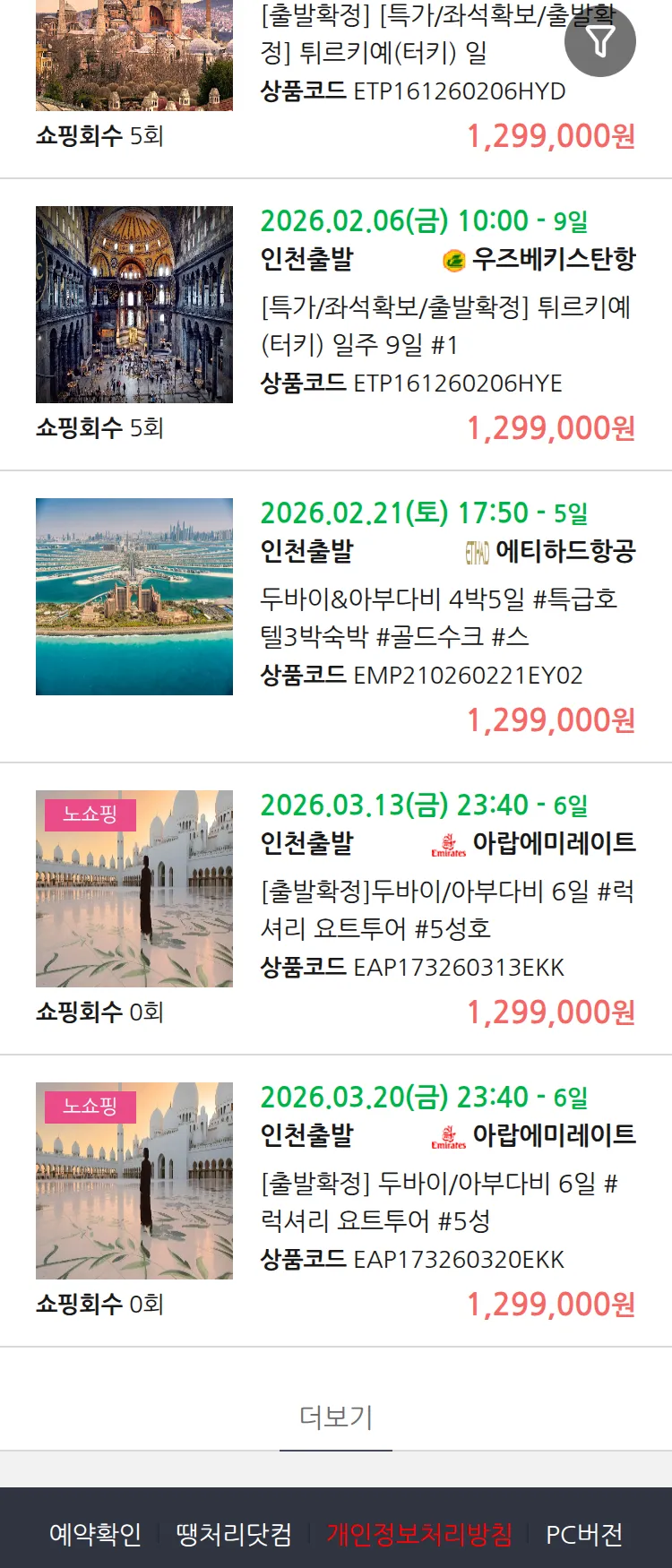 (1월 20일(화)) 땡처리 99.9% 확정 패키지