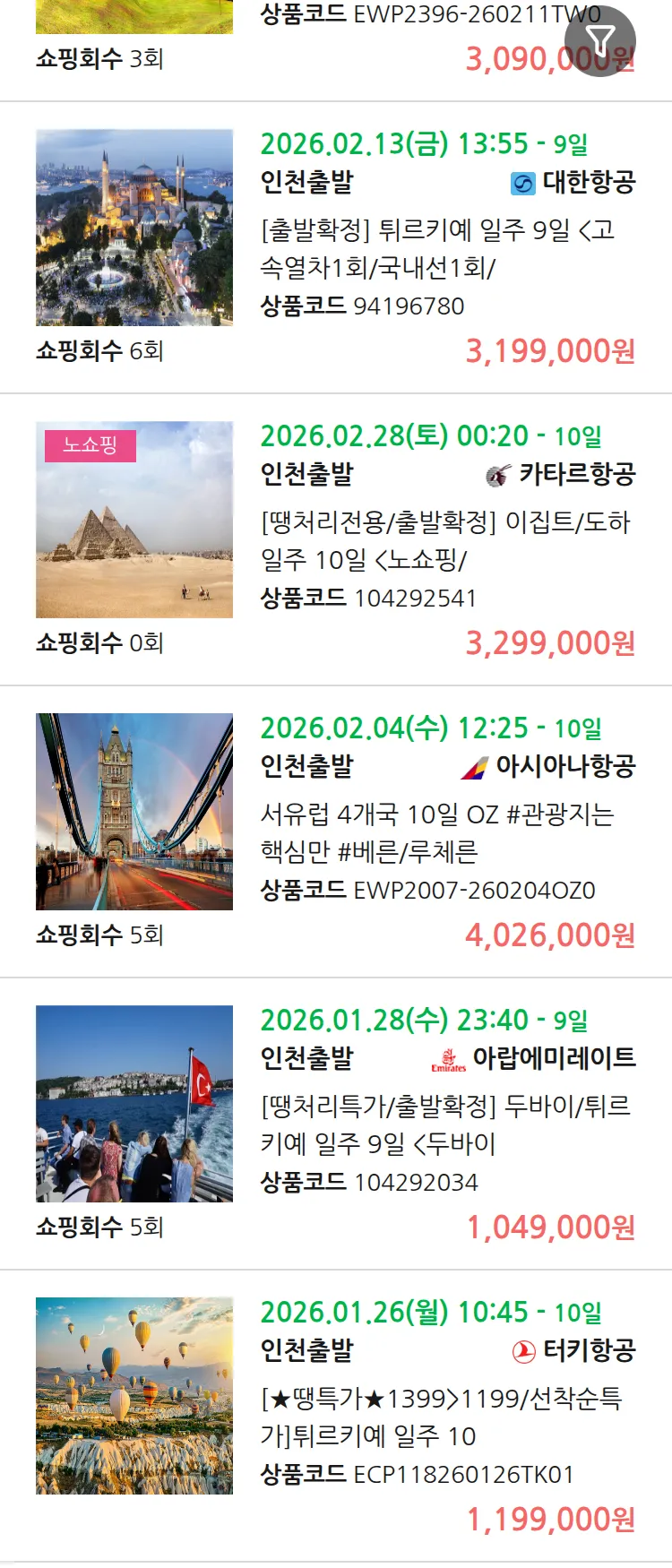 (1월 20일(화)) 땡처리 유럽 긴급 패키지