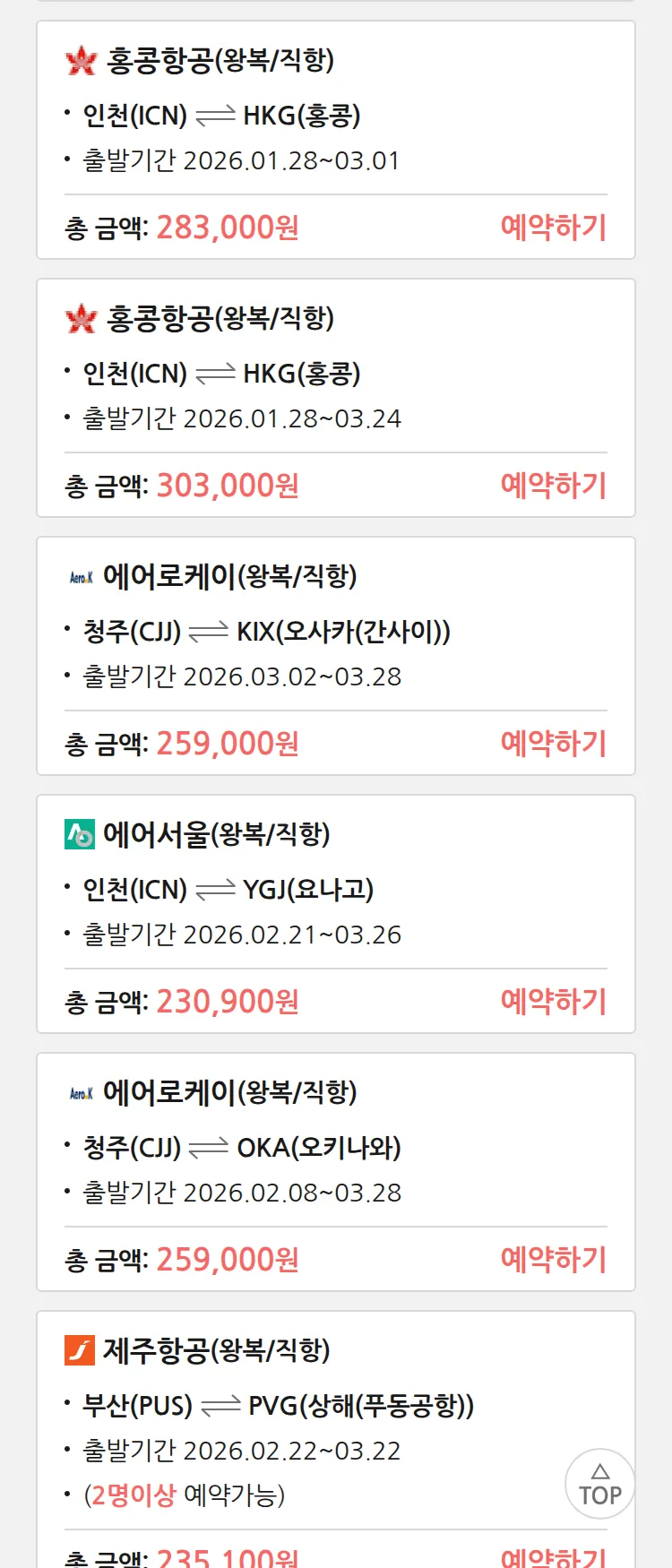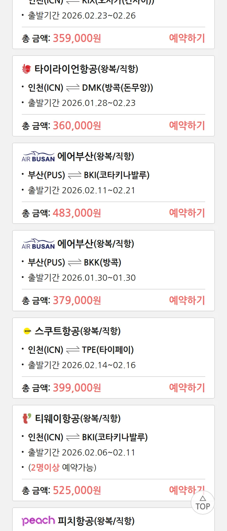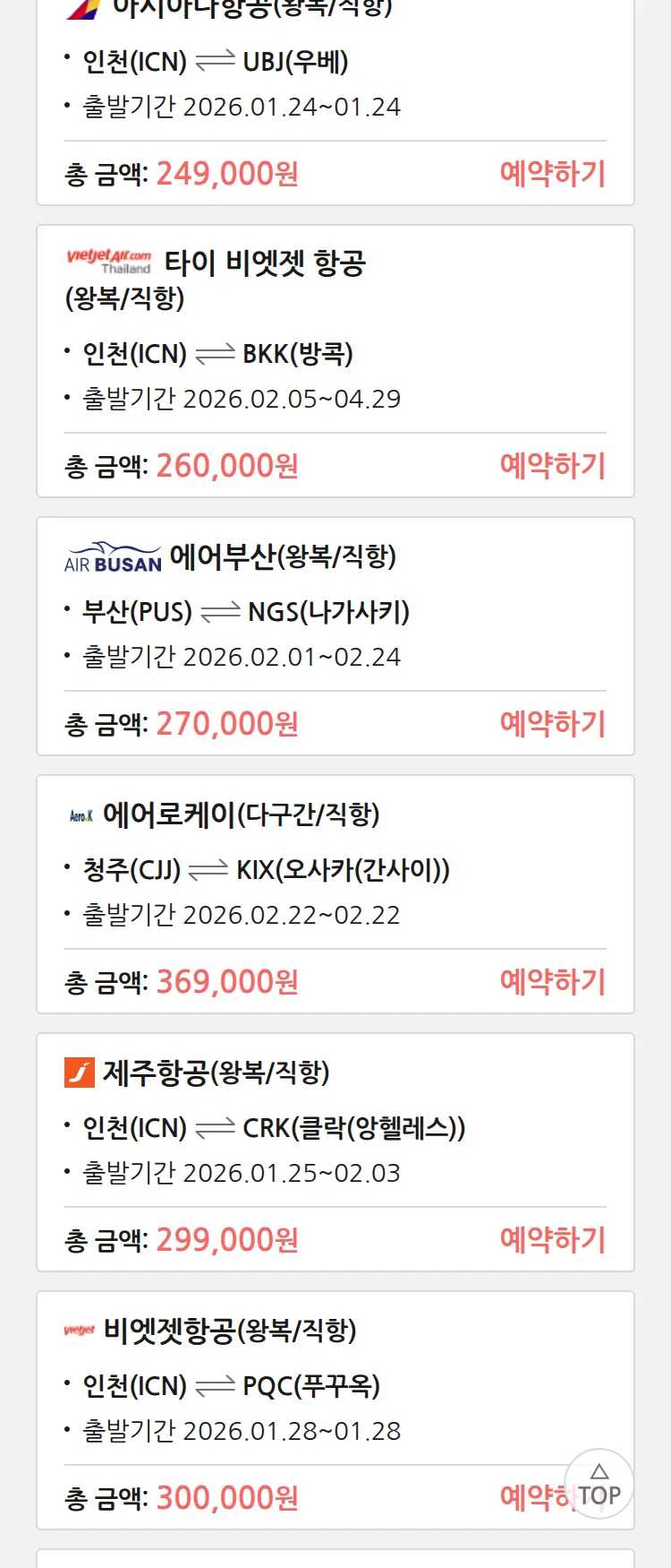 (1월 20일(화)) 땡처리 특가 항공권