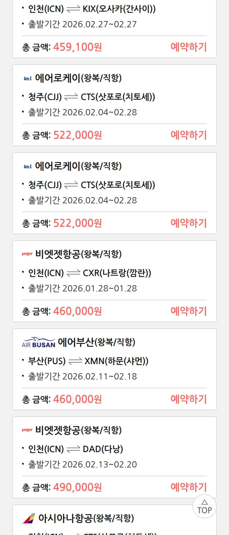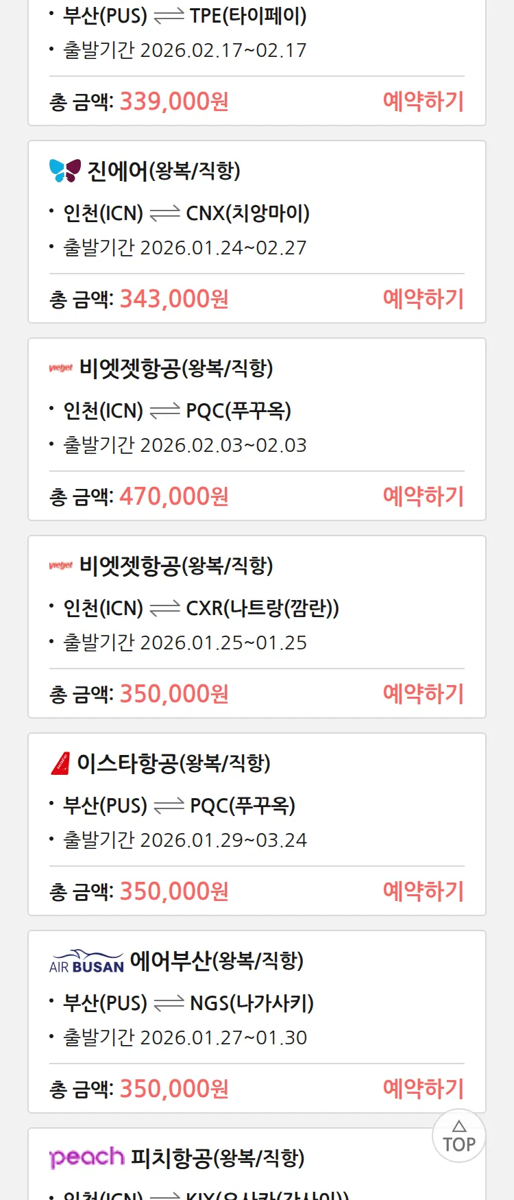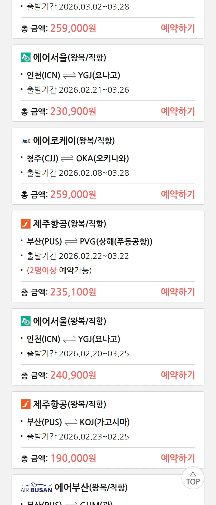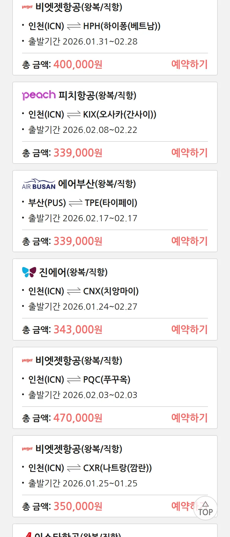 (1월 20일(화)) 땡처리 특가 항공권