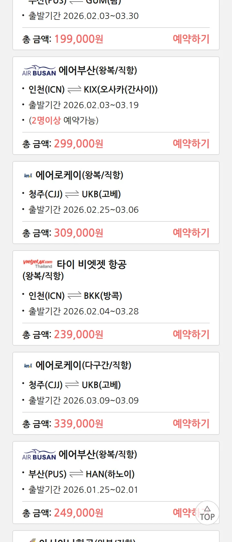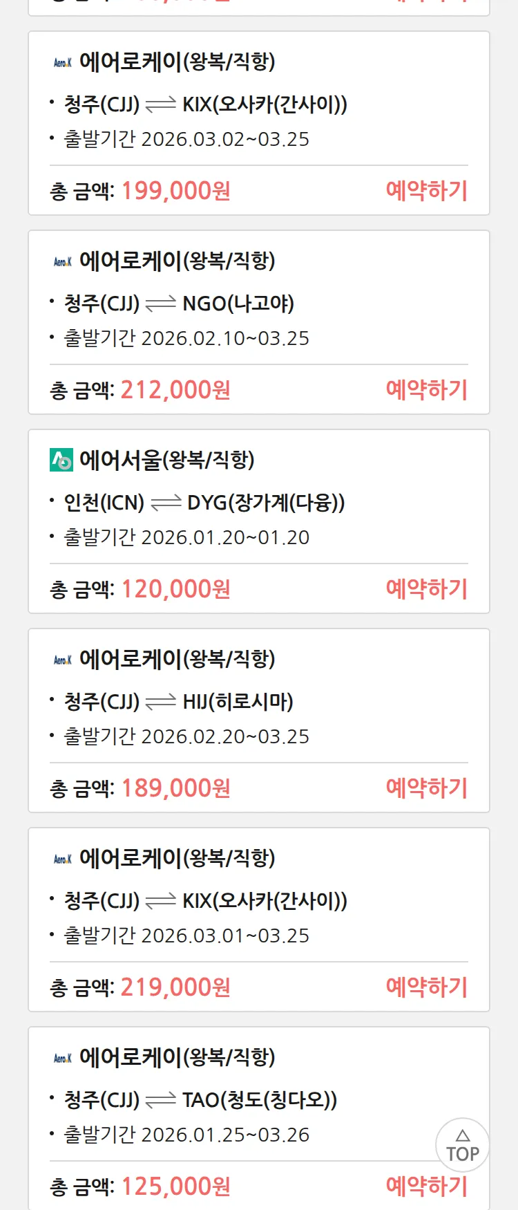 (1월 19일(월)) 땡처리 특가 항공권