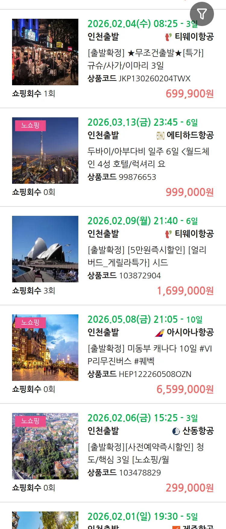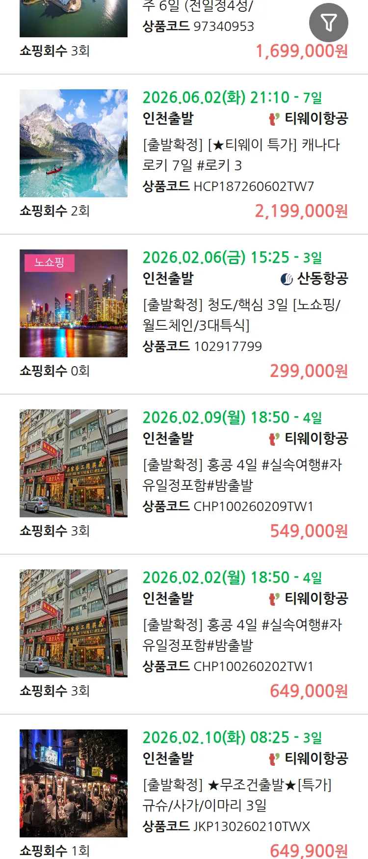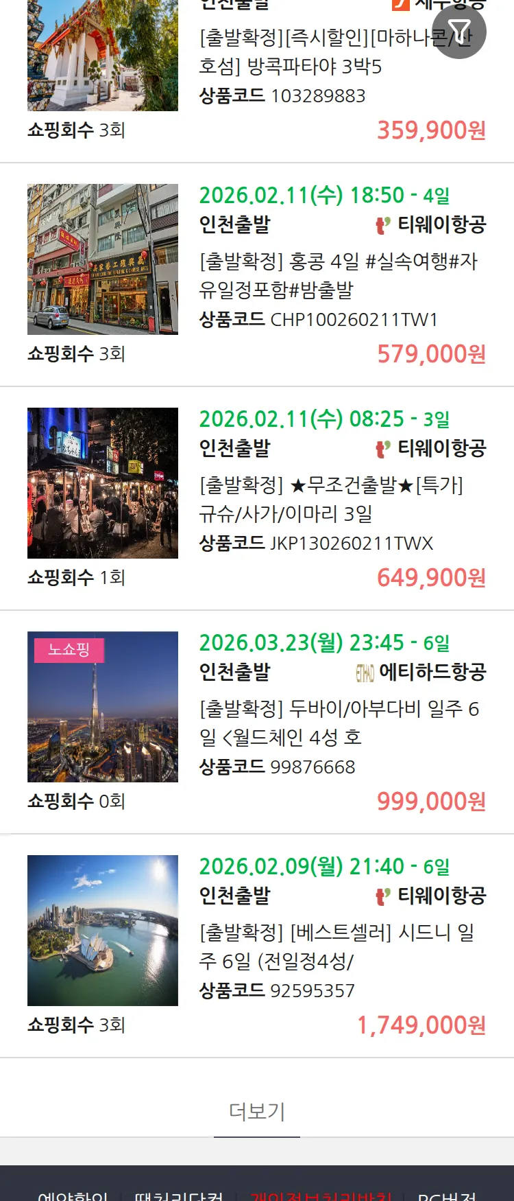 (1월 18일(일)) 땡처리 99.9% 확정 패키지