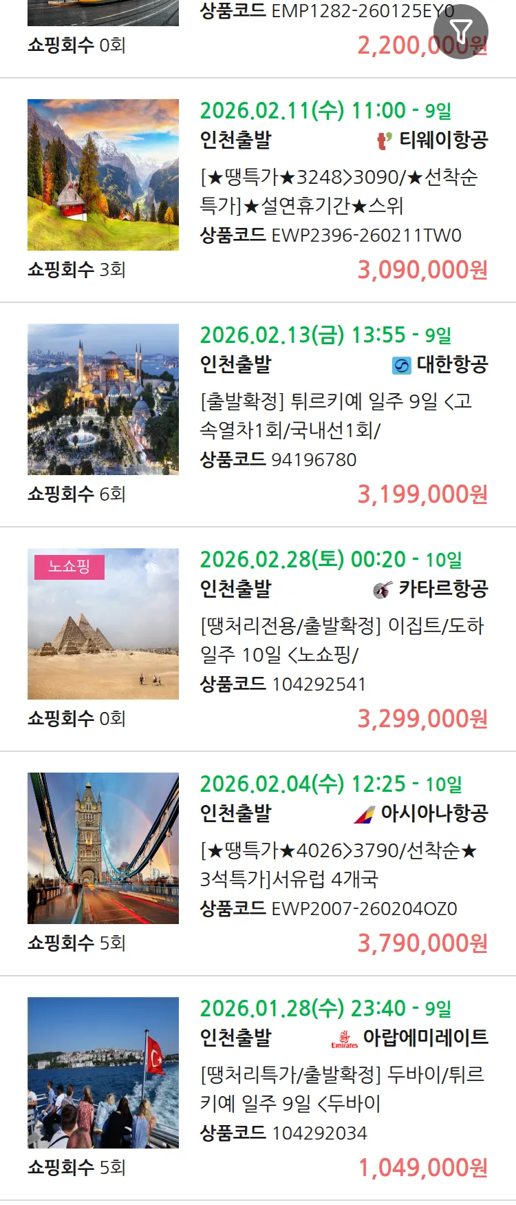 (1월 20일(화)) 땡처리 유럽 긴급 패키지