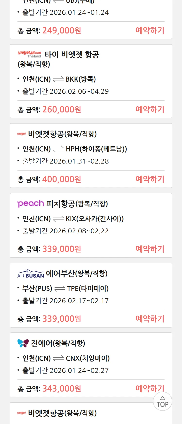 (1월 20일(화)) 모두투어 동남아 특가 항공권