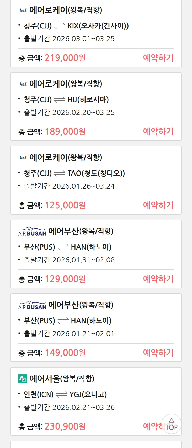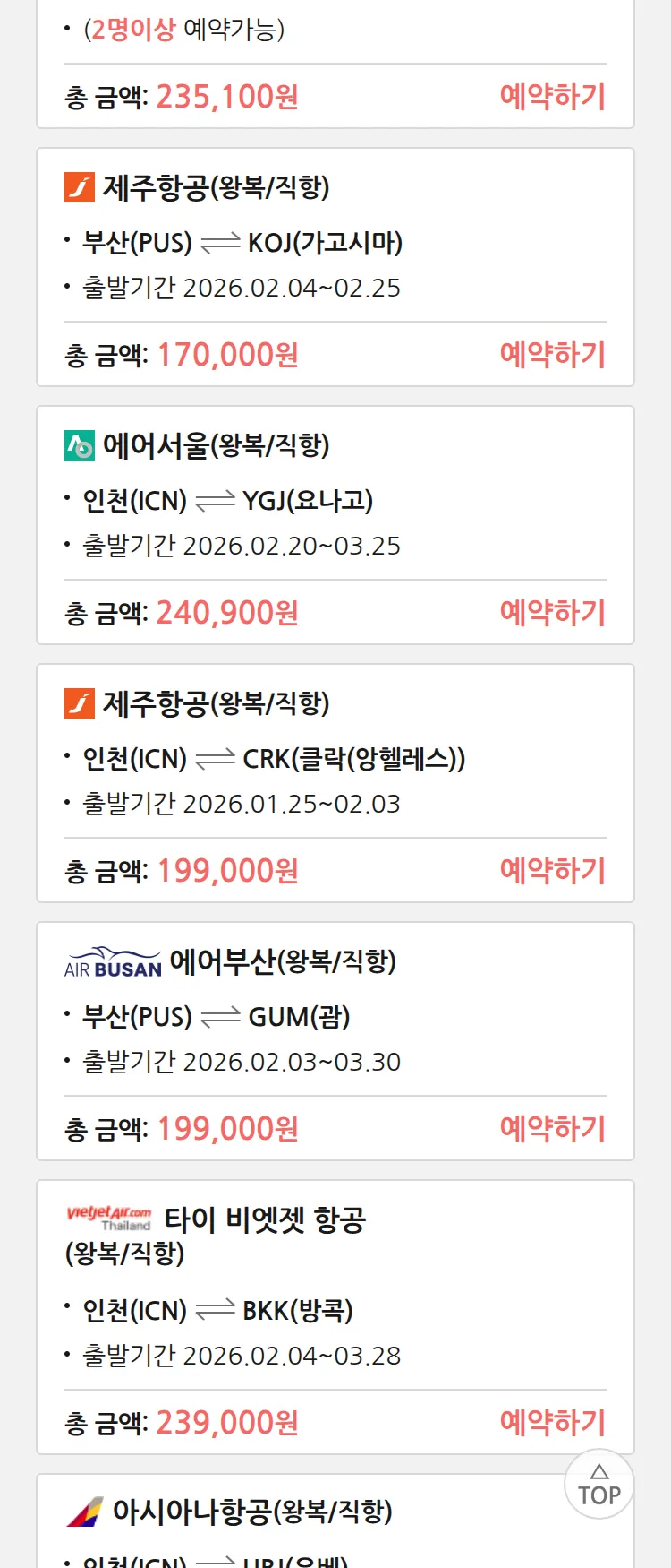 (1월 20일(화)) 땡처리 99.9% 확정 패키지