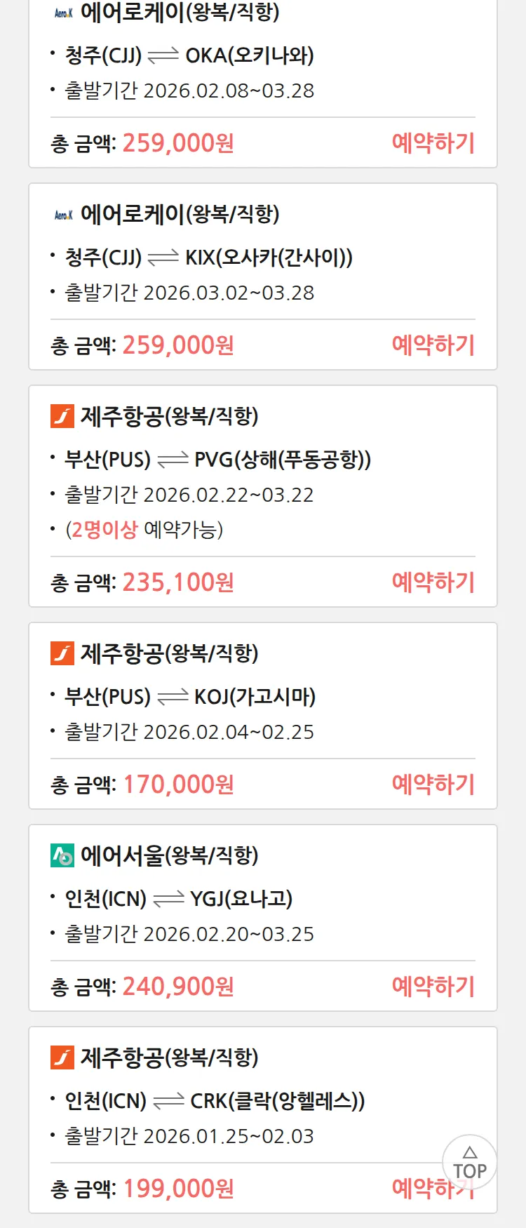 (1월 20일(화)) 모두투어 일본 특가 항공권