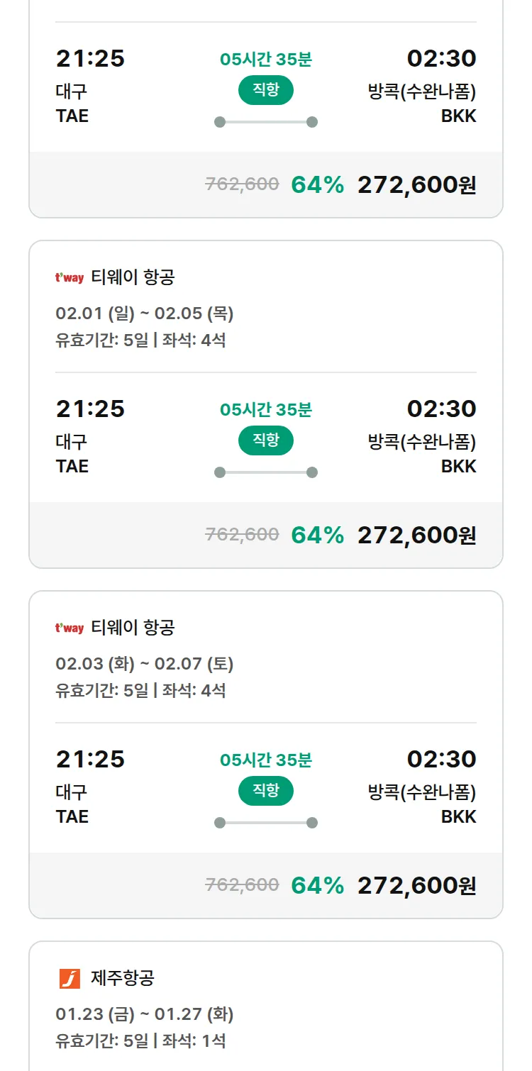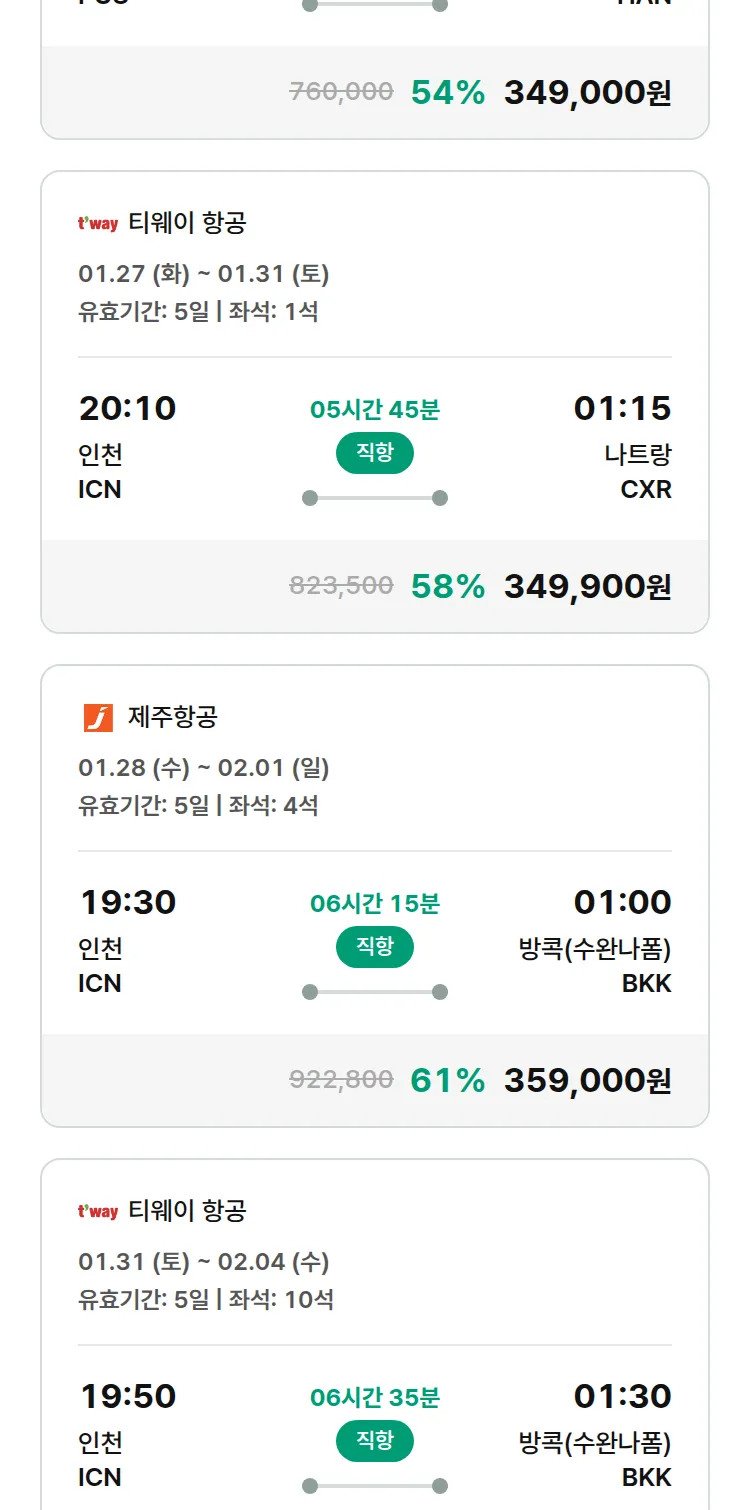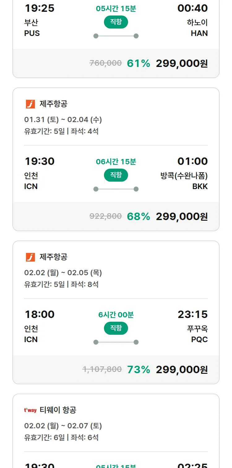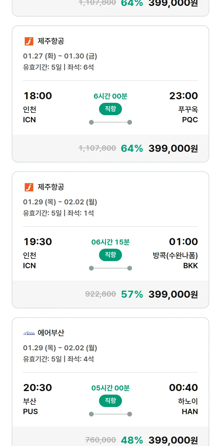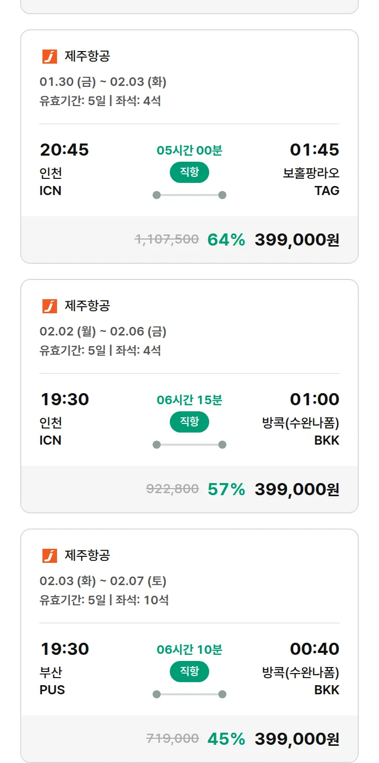 (1월 20일(화)) 땡처리 특가 항공권