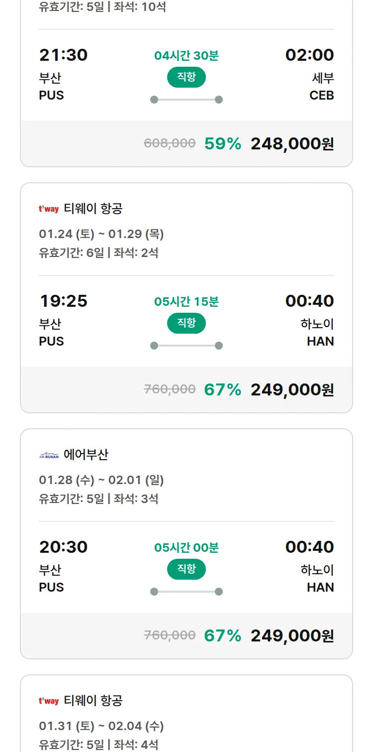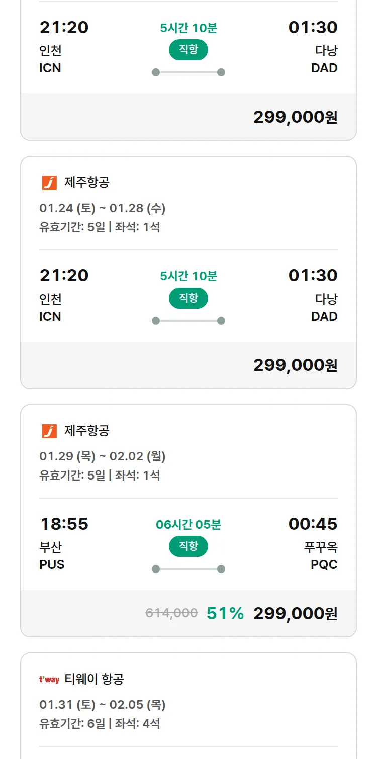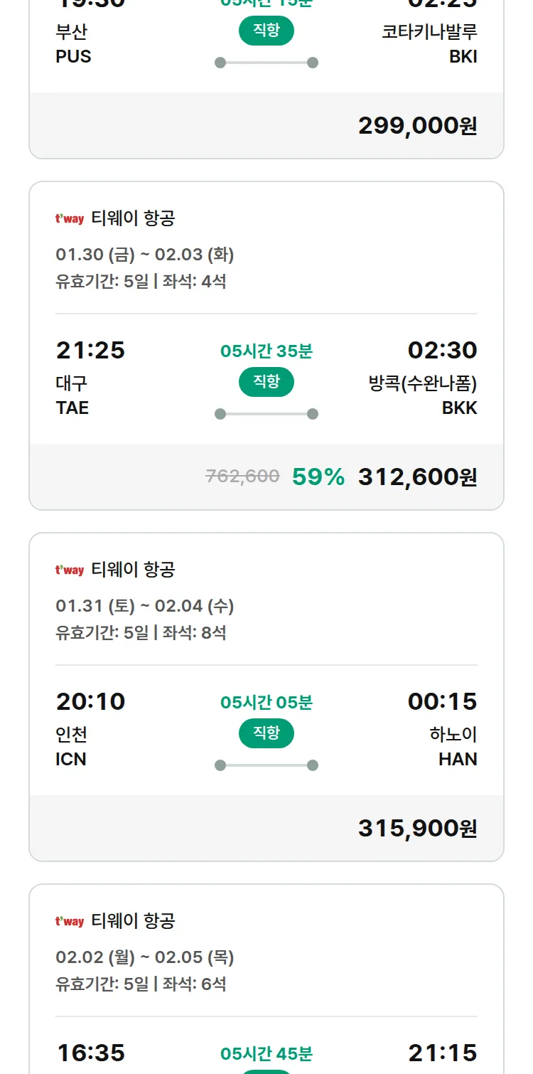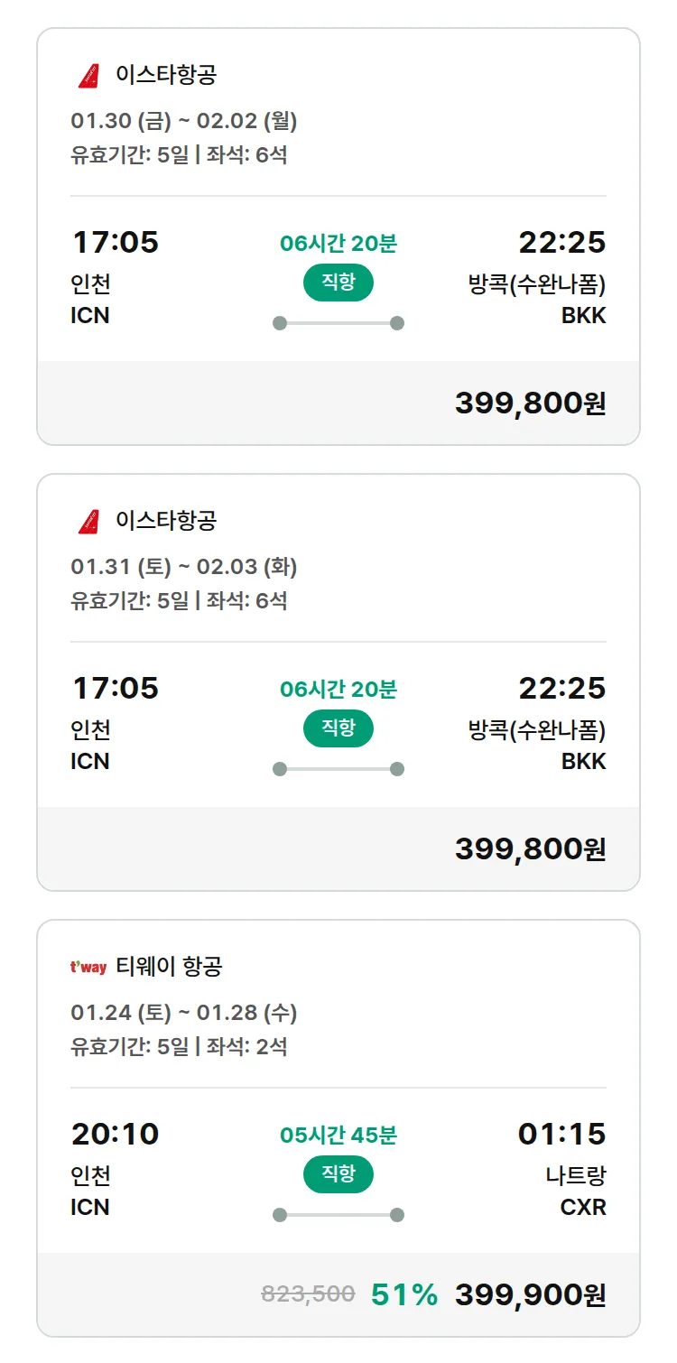 (1월 20일(화)) 땡처리 특가 항공권