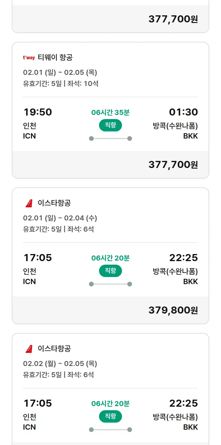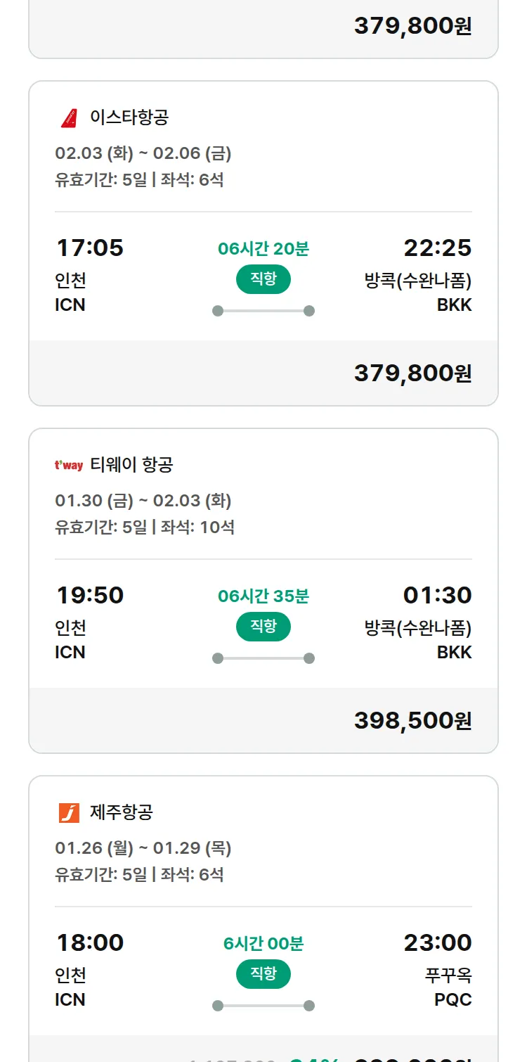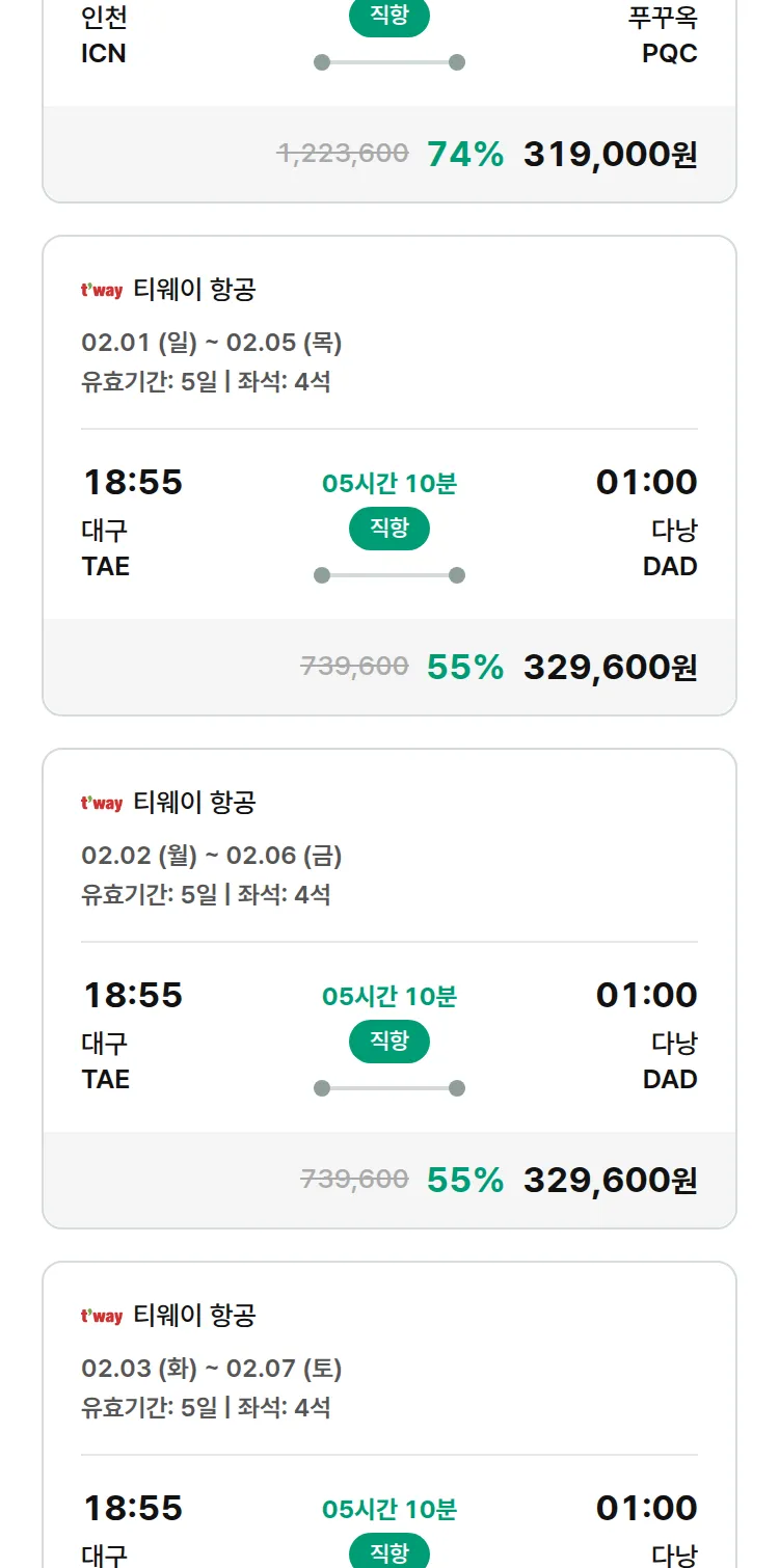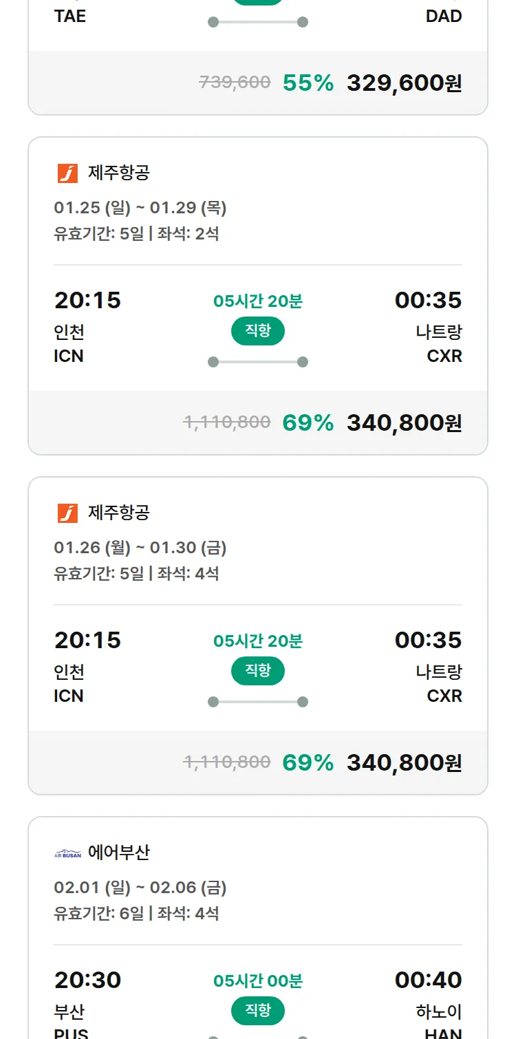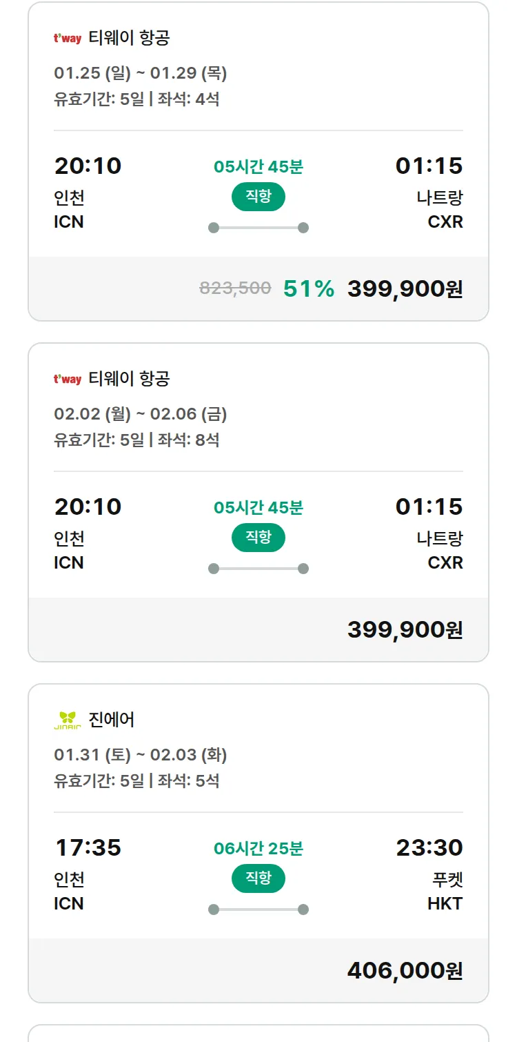 (1월 20일(화)) 땡처리 특가 항공권