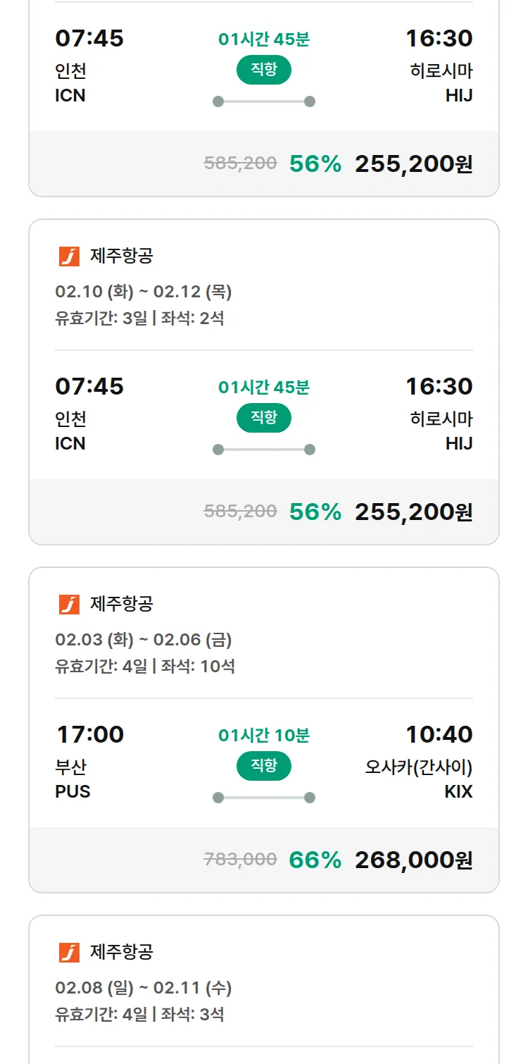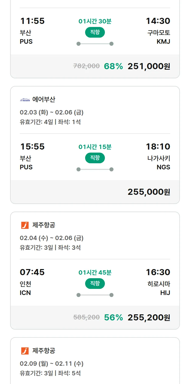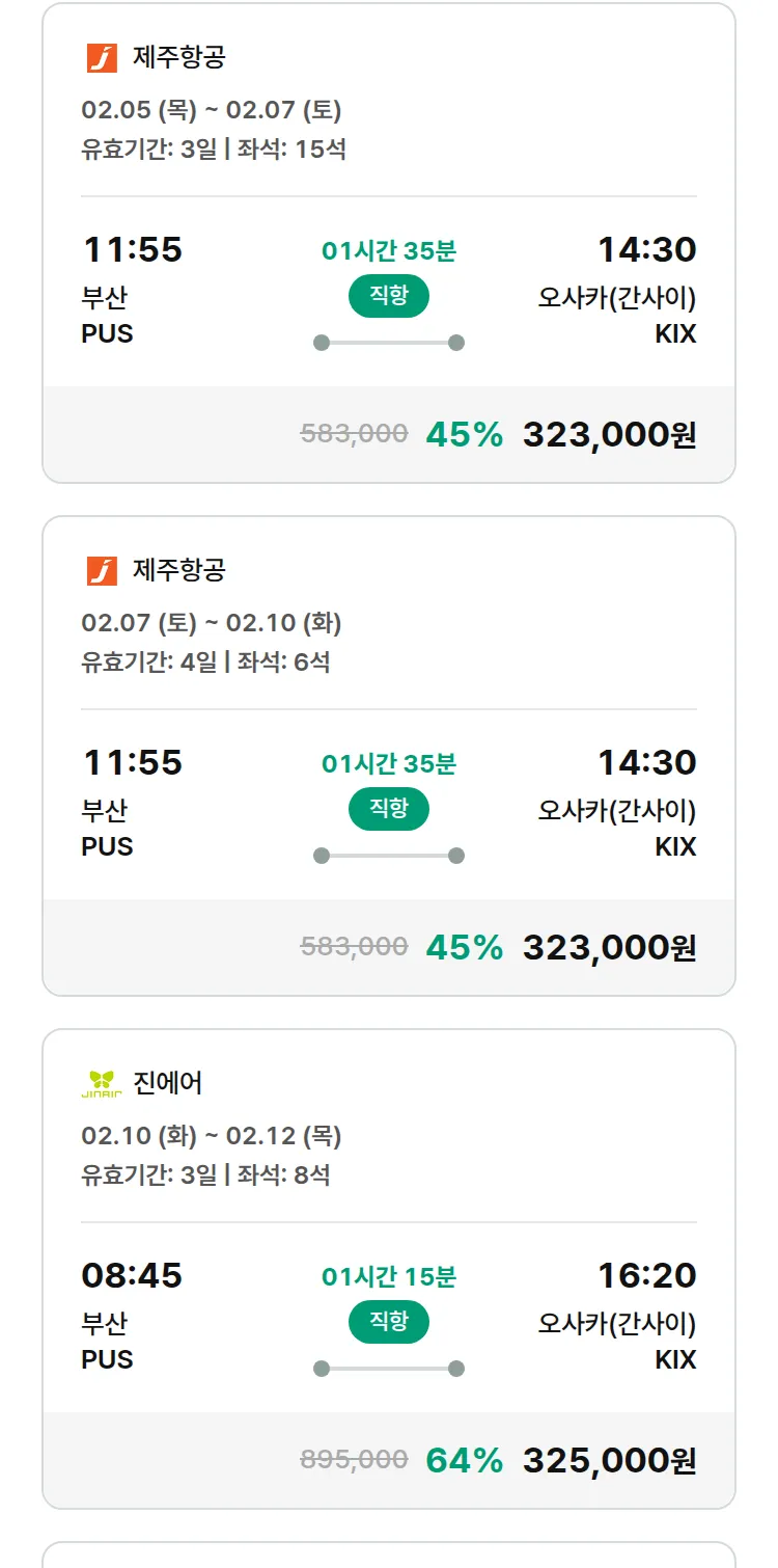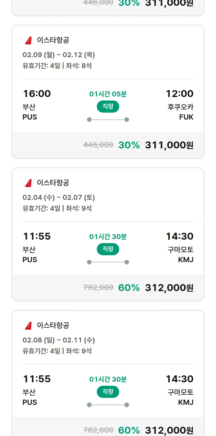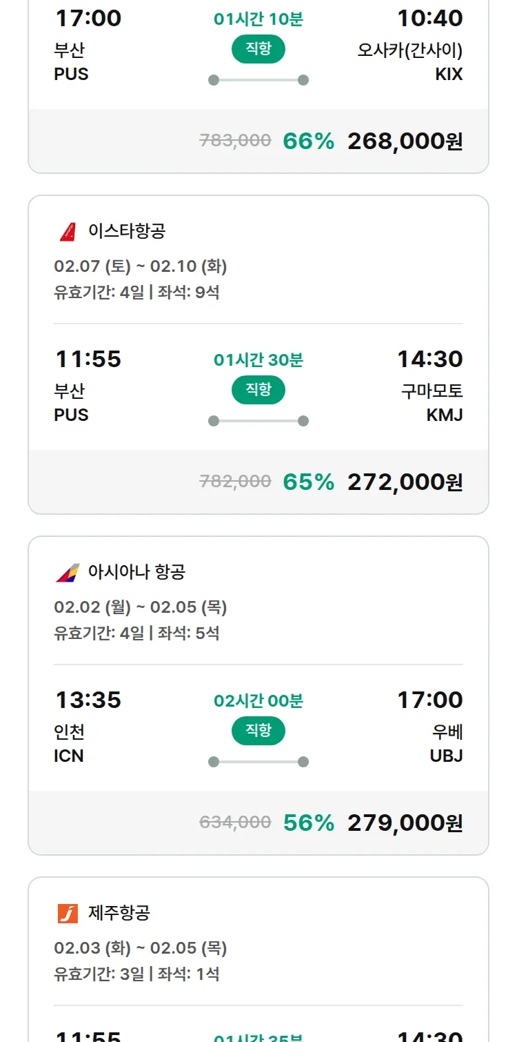 (1월 20일(화)) 모두투어 일본 특가 항공권