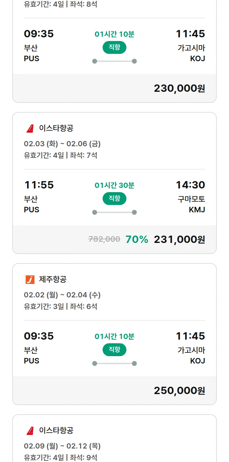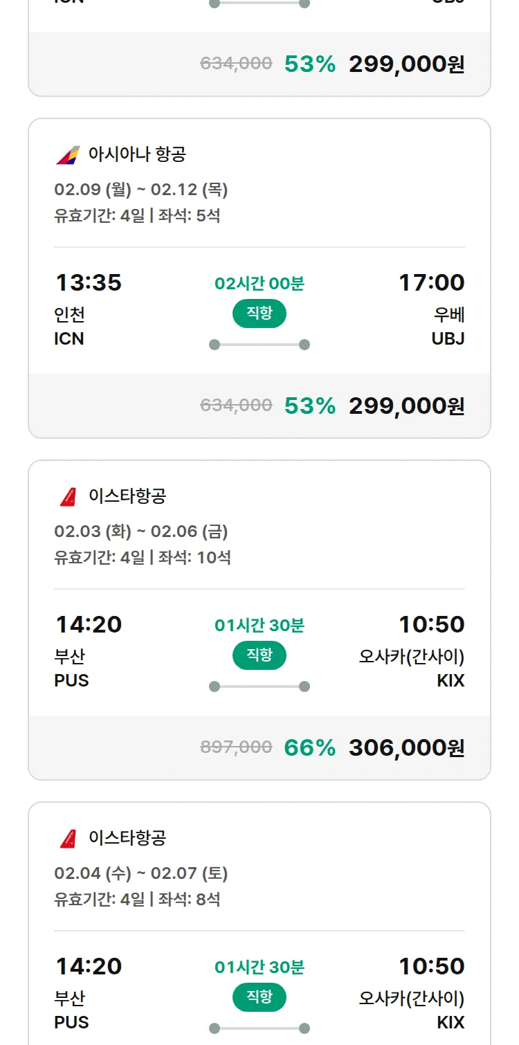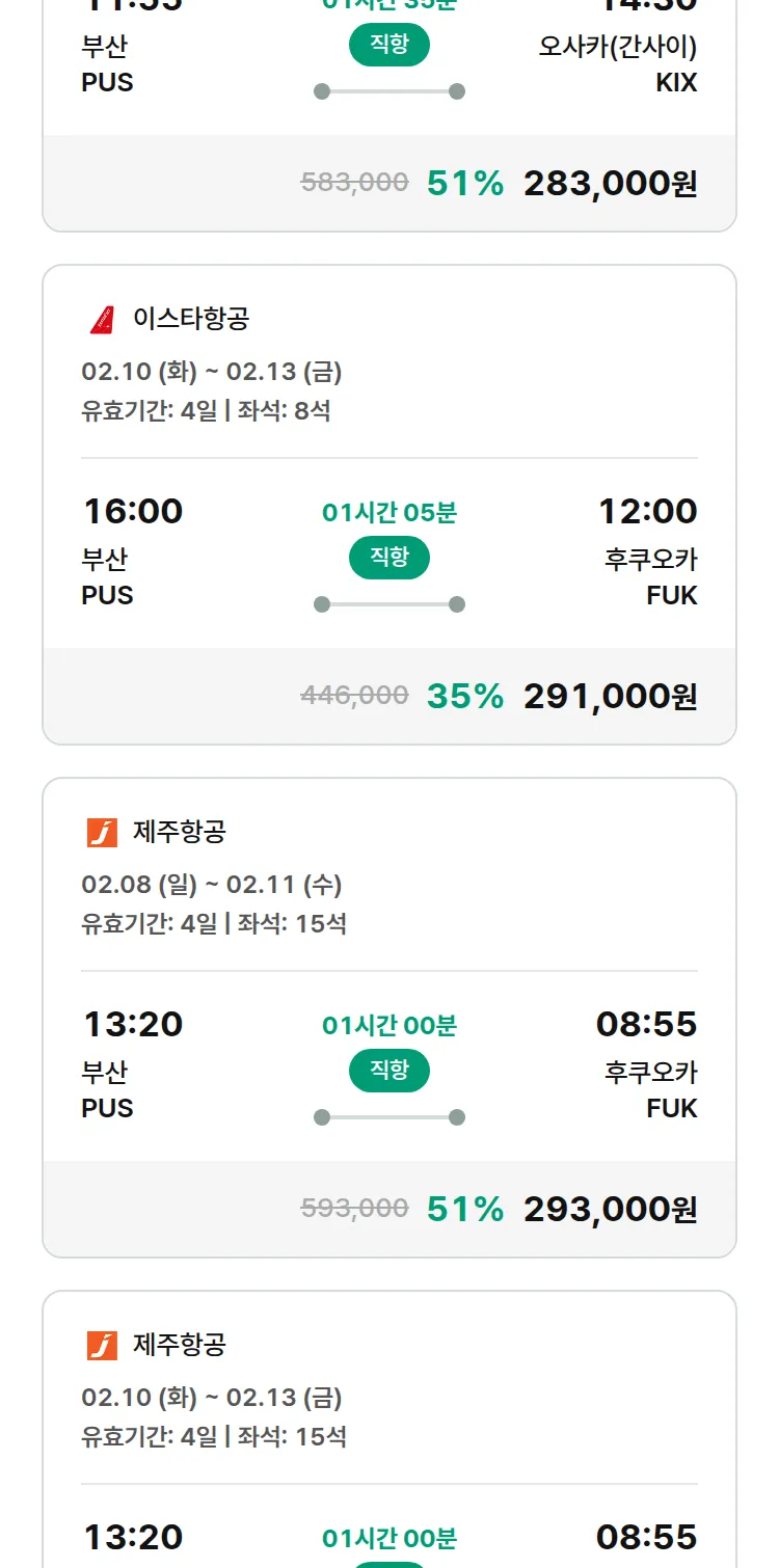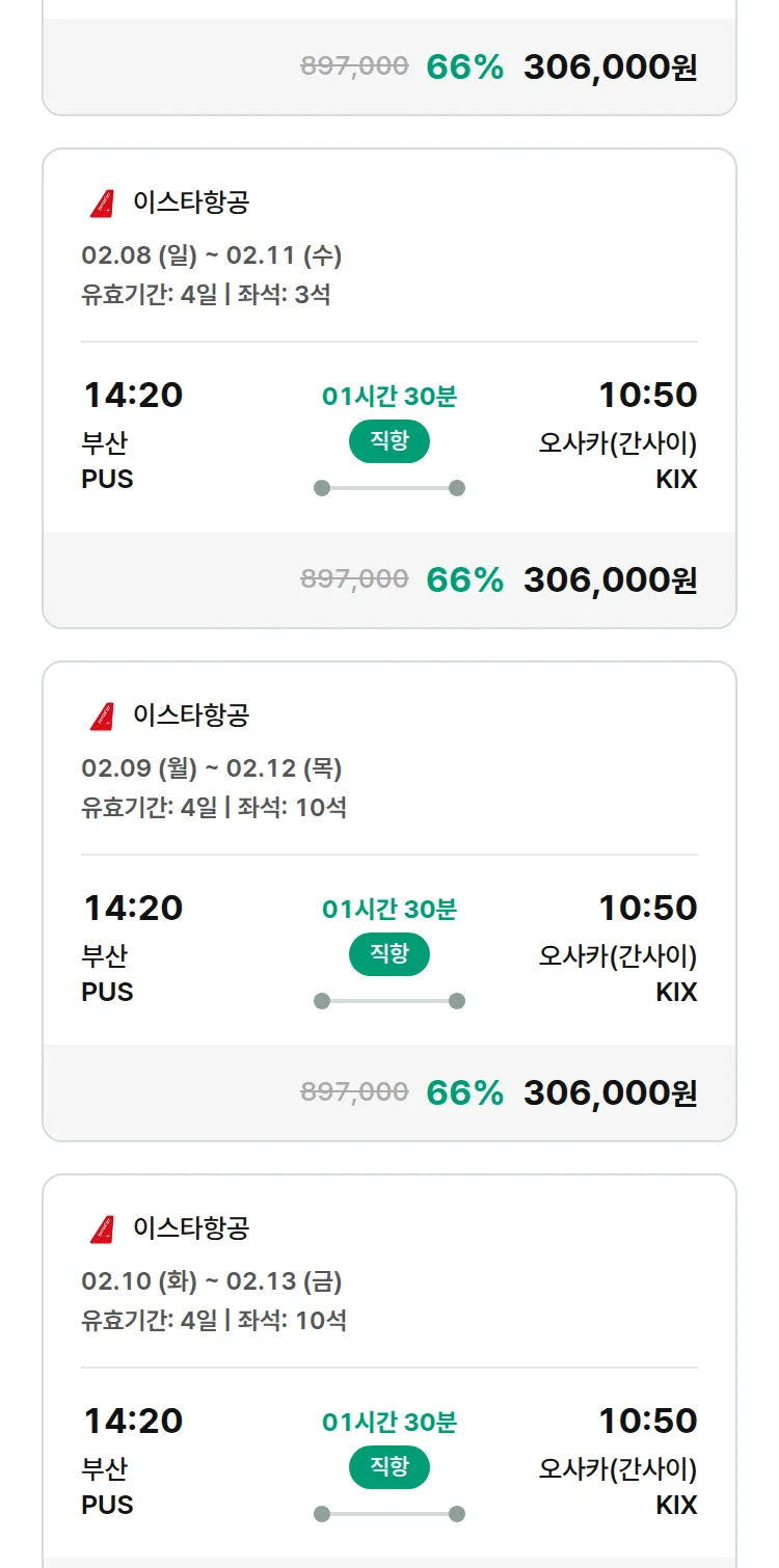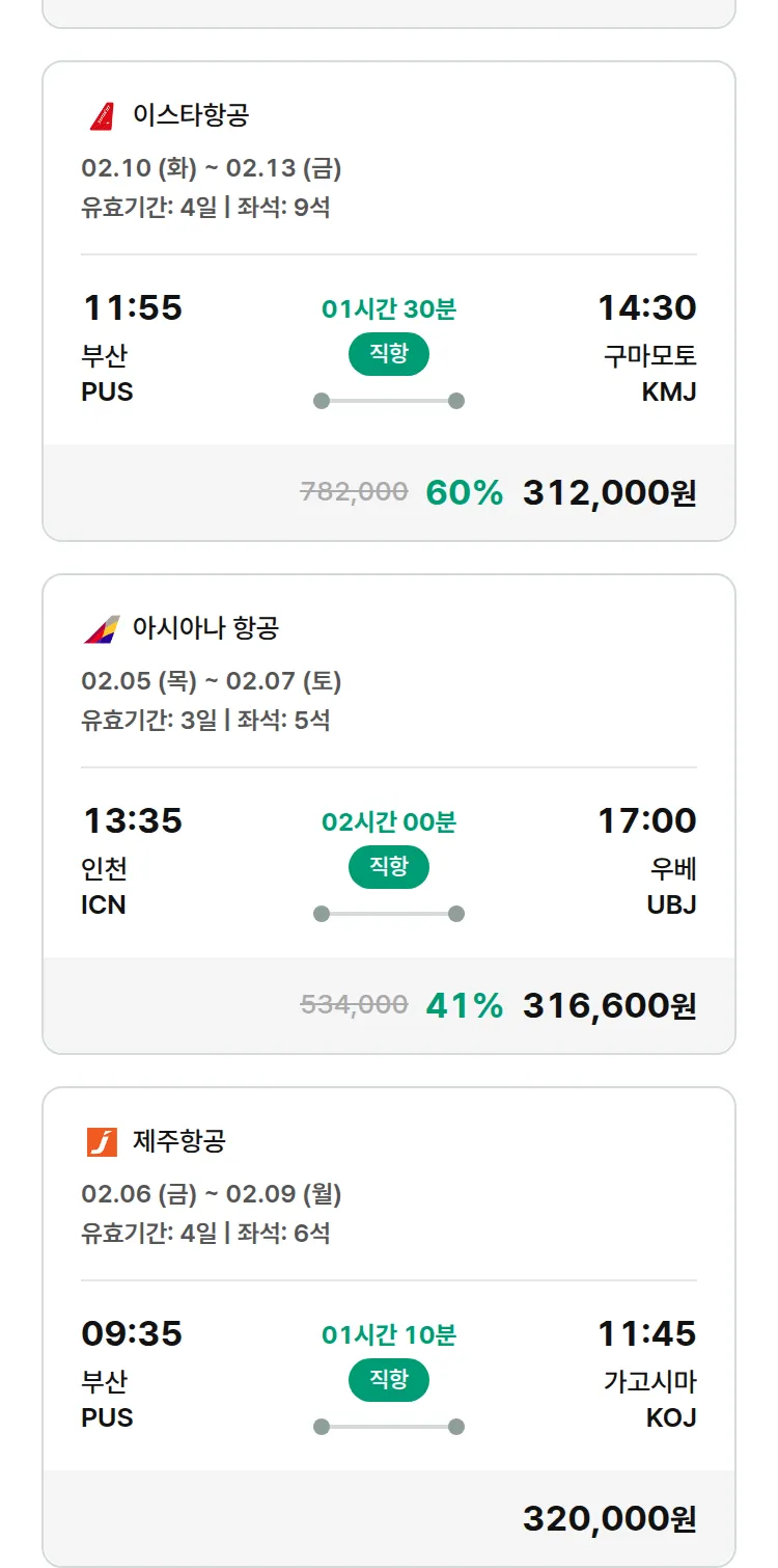 (1월 20일(화)) 모두투어 일본 특가 항공권