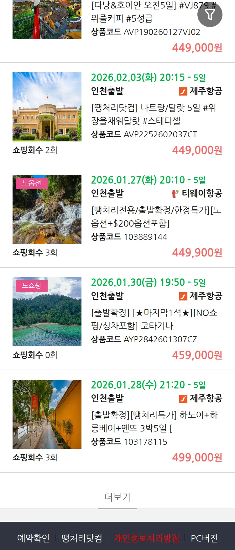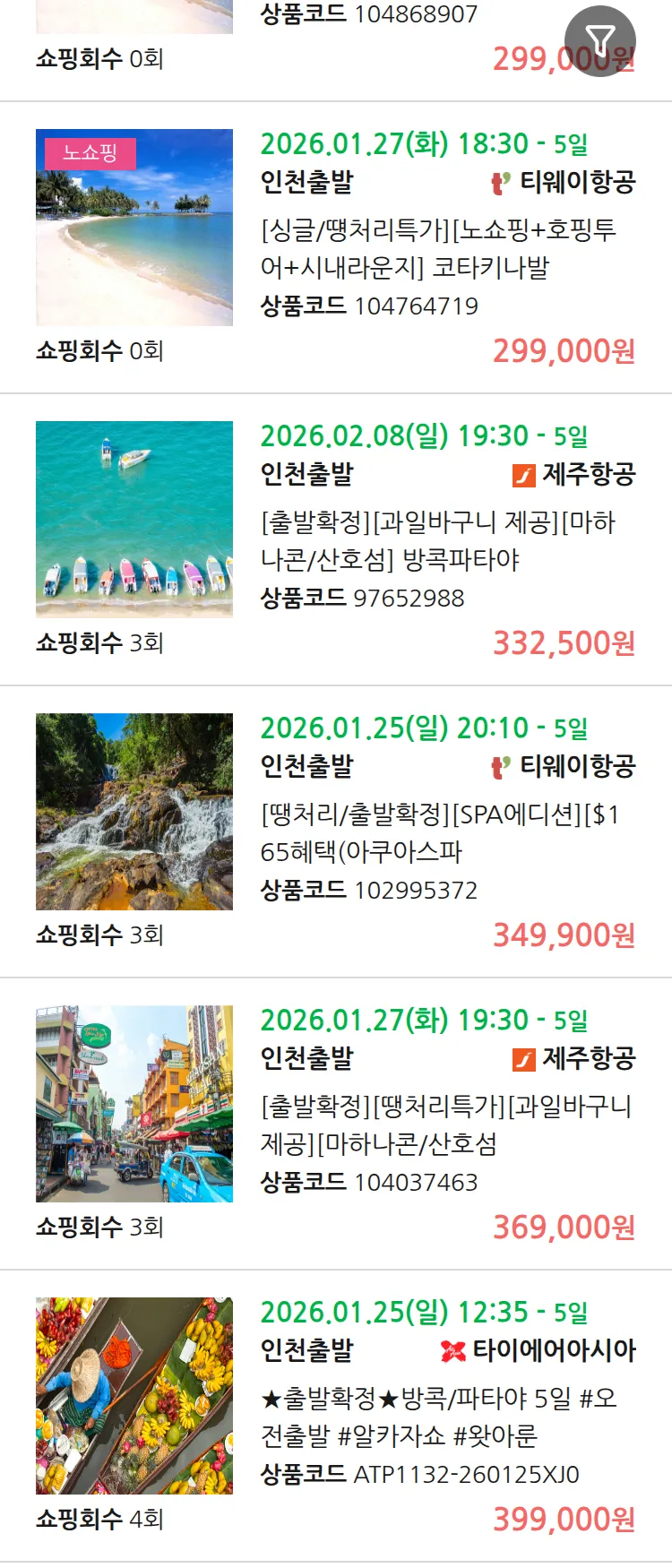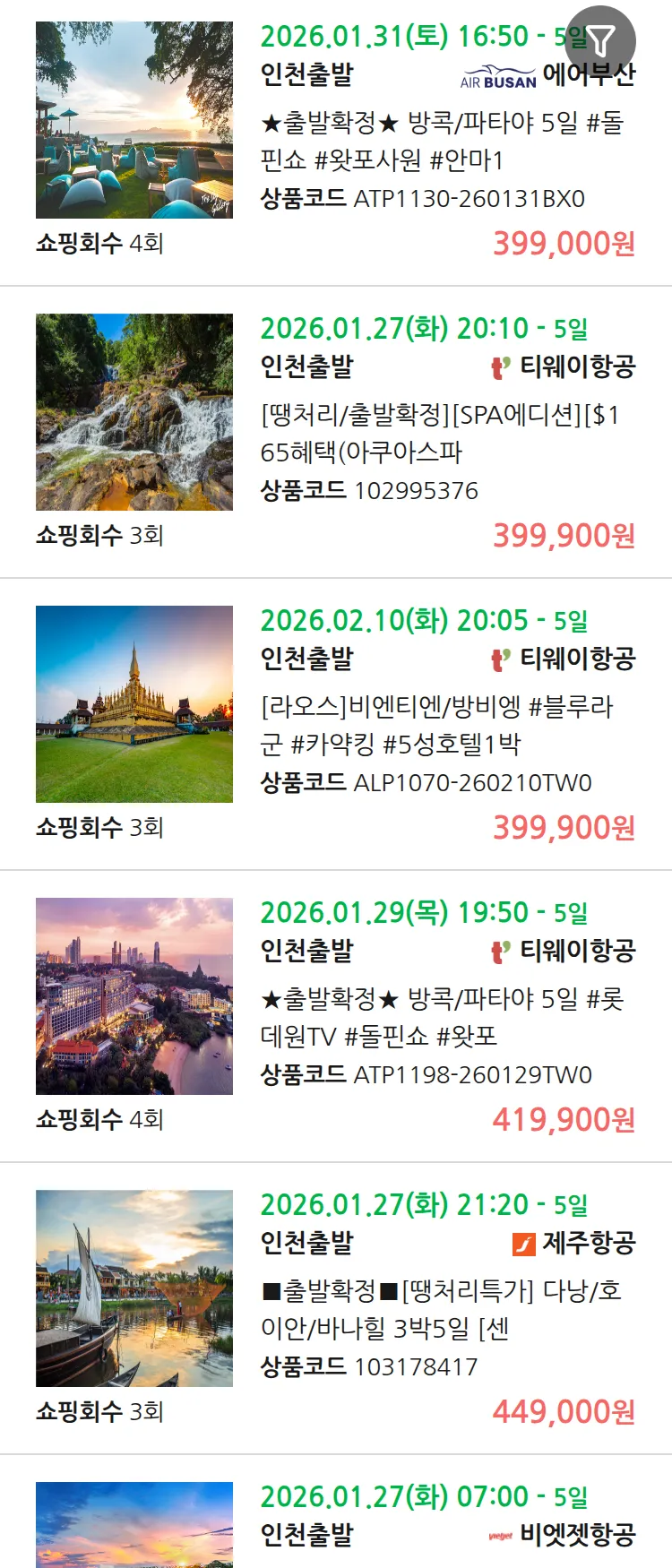 (1월 21일(수)) 땡처리 99.9% 확정 패키지